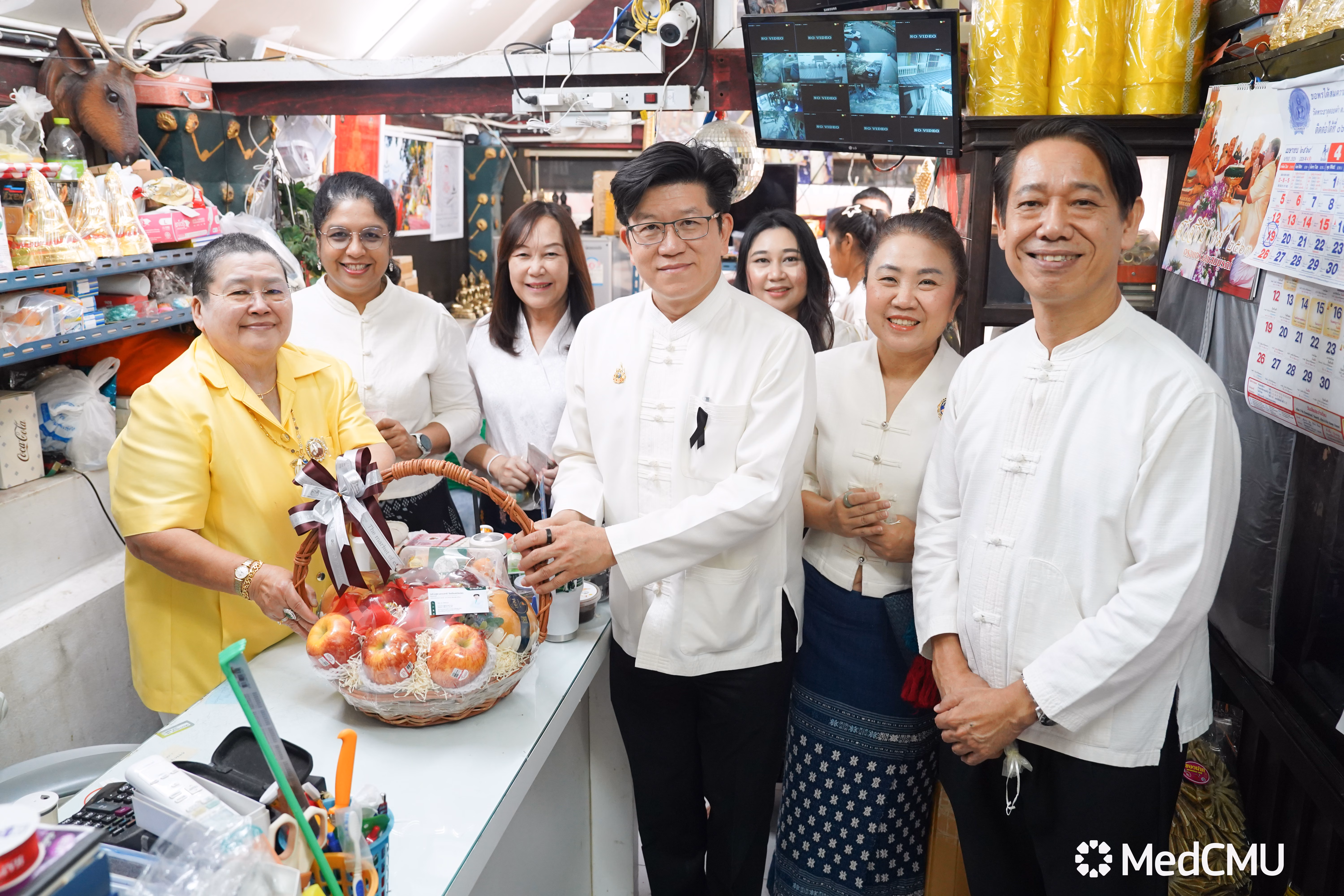 รศ.นพ.นเรนทร์ โชติรสนิรมิต คณบดีคณะแพทยศาสตร์ มช. พร้อมด้วย รศ.ดร.พญ.จิราภรณ์ โกรานา รองคณบดีด้านการฝึกอบรมแพทย์เฉพาะทาง, ผศ.ดร.ทนพญ.วิยะดา แดนไกล ผู้ช่วยคณบดีด้านพัสดุและยานพาหนะ, คุณสุคนธา คุณาพันธ์ รองหัวหน้าฝ่ายการพยาบาล ด้านบริหารและบริการ, คุณศรีทัย สีทิพย์ หัวหน้างานบริการกลางโรงพยาบาล และ คุณอรวรรณ เร่งเร็ว หัวหน้างานบริหารทั่วไป