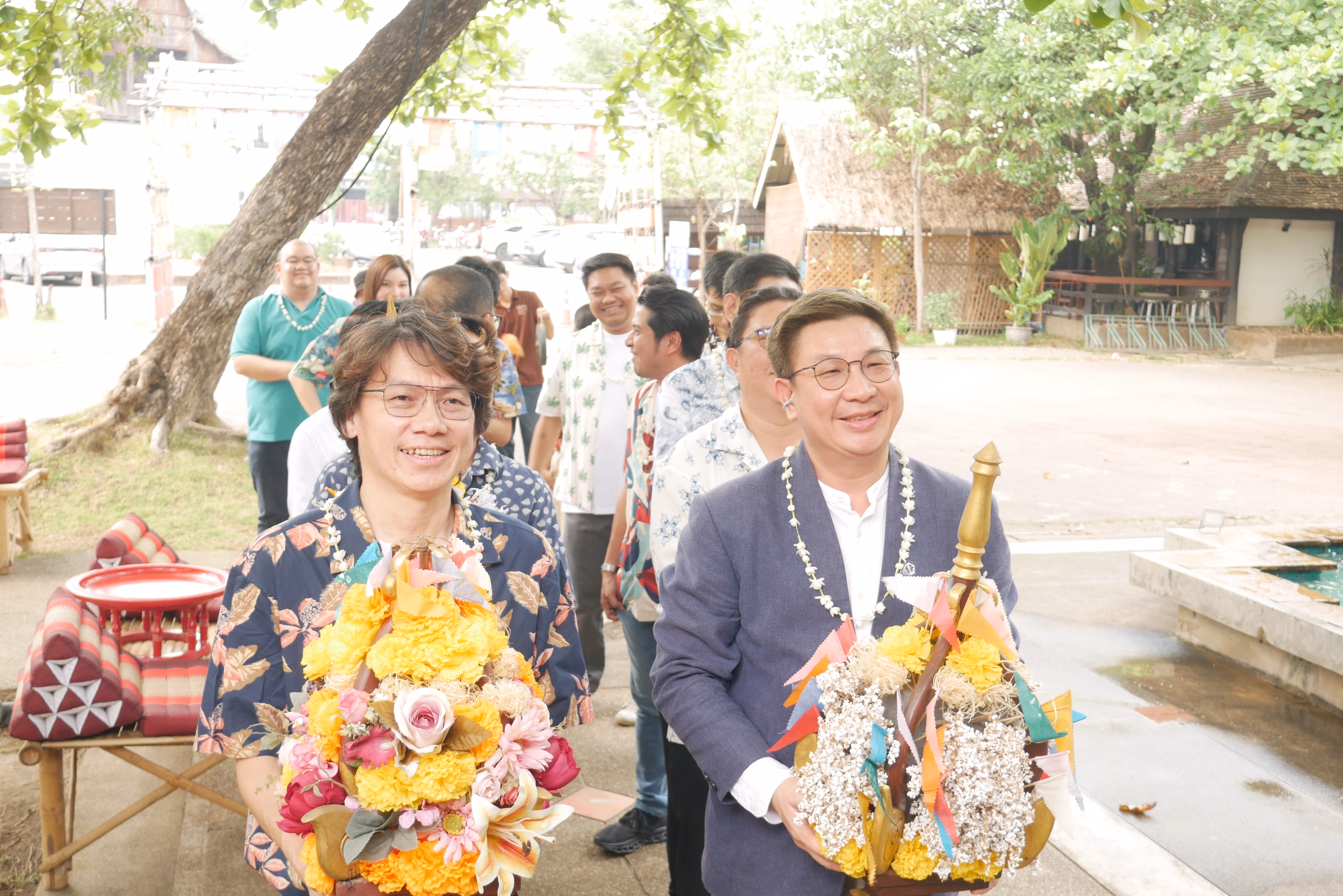 ภายในพิธีได้มีการให้แขกผู้มีเกียรติ และผู้เข้าร่วมประชุมลงทะเบียนพร้อมรับพวงมาลัยดอกมะลิ ก่อนที่คณะกรรมการ และ YEC จะแห่ขบวนขันดอกน้ำขมิ้นส้มป่อย พร้อมเครื่องดำหัว และเรียนเชิญประธานกิตติมศักดิ์ ประธานอาวุโส และกรรมการกิตติมศักดิ์ นั่งประจำที่