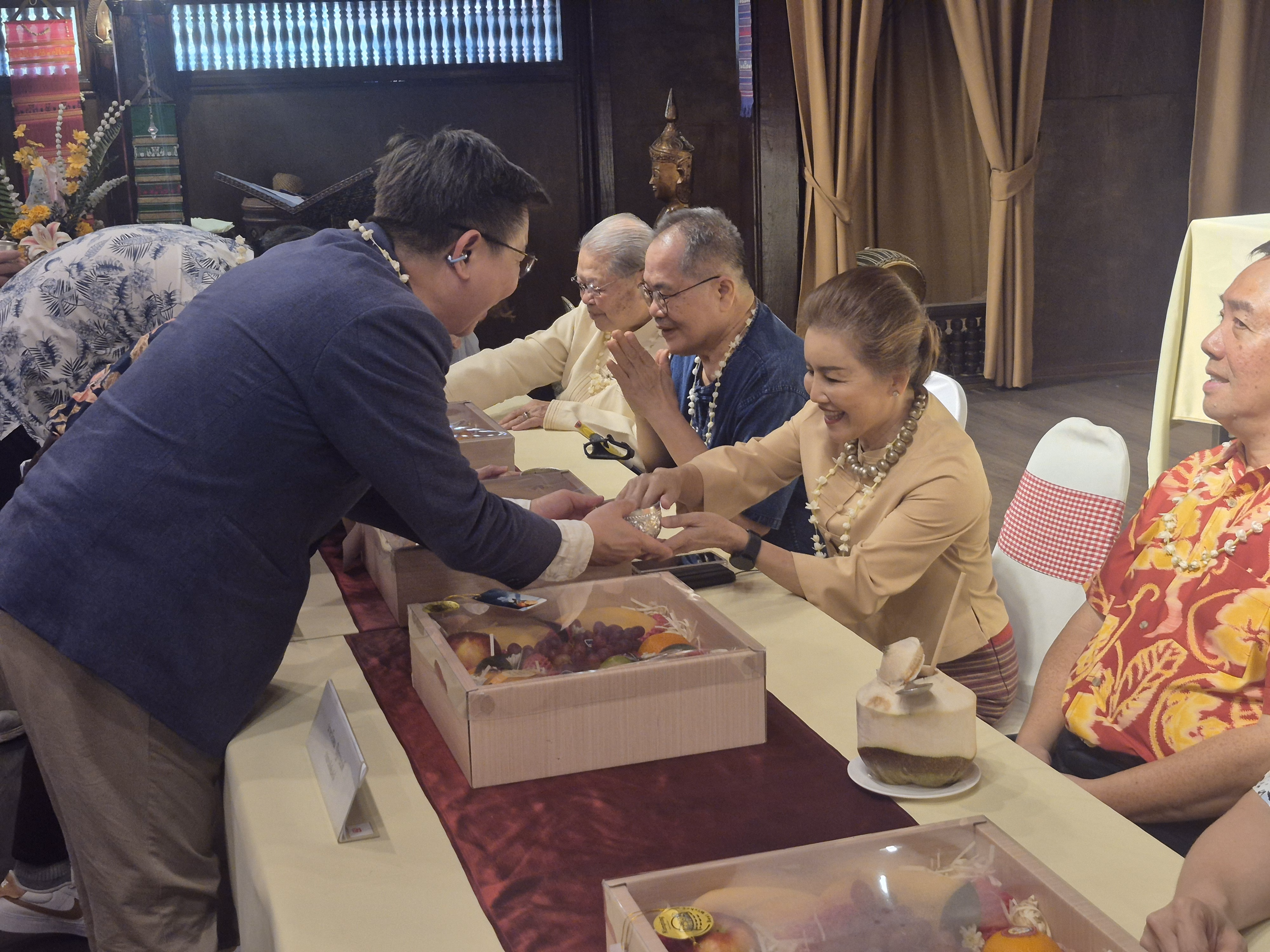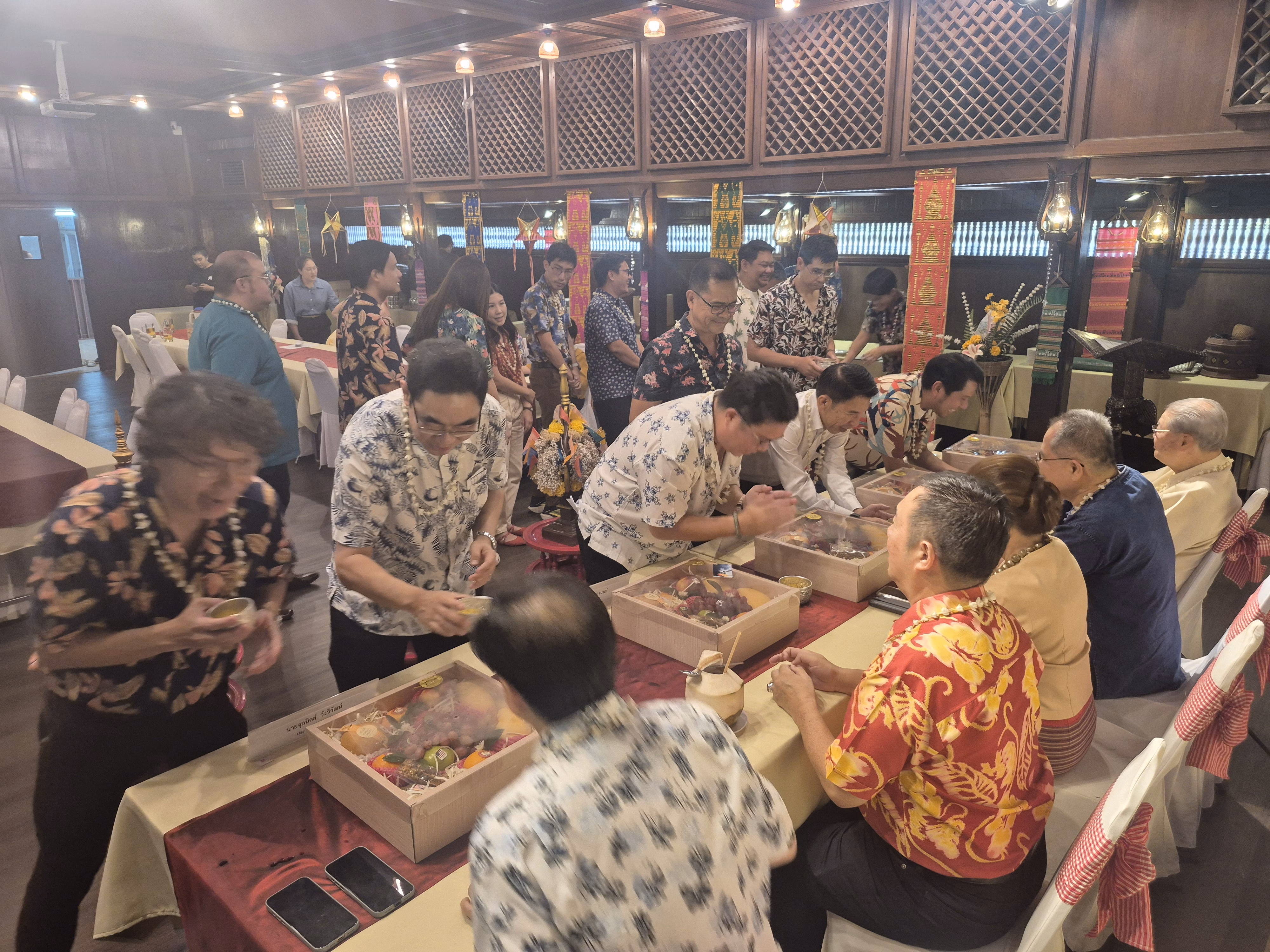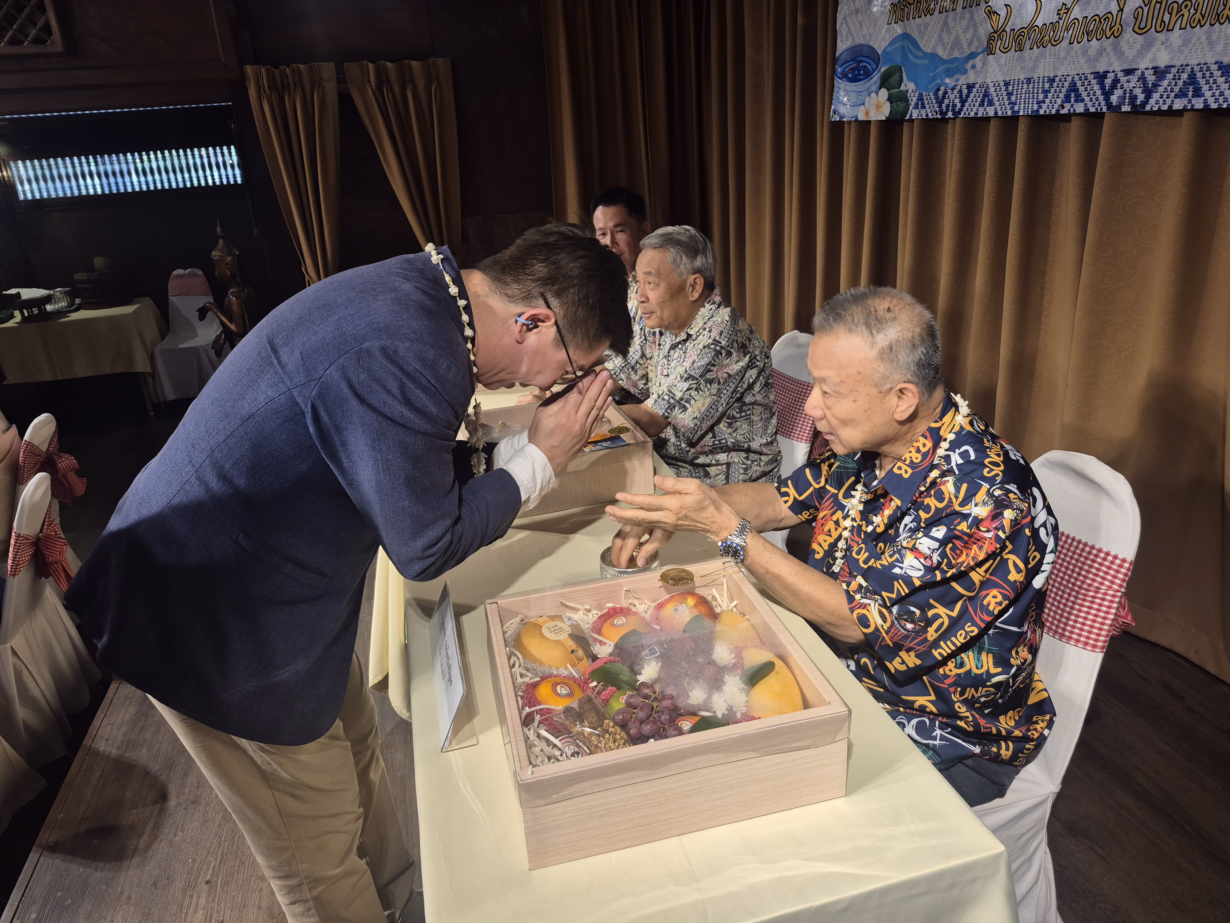จากนั้นจึงเริ่มพิธีการรดน้ำดำหัว โดยพิธีกรกล่าวต้อนรับอดีตประธาน และกรรมการกิตติมศักดิ์ จากนั้นเรียนเชิญ ดร.กอบกิจ อิสรชีววัฒน์ ประธานหอการค้าจังหวัดเชียงใหม่ กล่าวขอสุมาคารวะพร้อมทั้งขอพร จากนั้นเรียนเชิญประธานกิตติมศักดิ์หอการค้าจังหวัดเชียงใหม่ ให้พร ก่อนรับประทานอาหารร่วมกัน