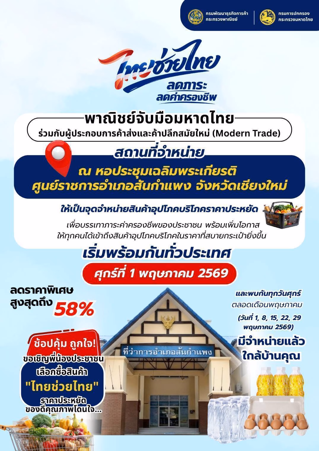 อำเภอสันกำแพง เตรียม Kick-off โครงการ “ไทยช่วยไทย” จำหน่ายสินค้าราคาประหยัด ณ ที่ว่าการอำเภอสันกำแพง