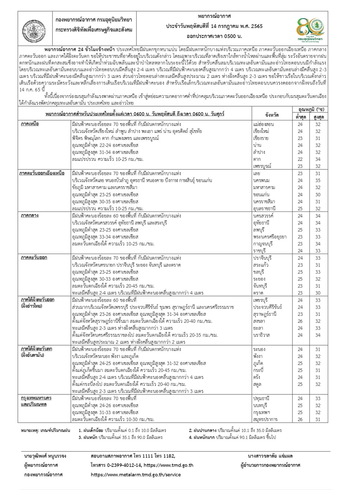 กรมอุตุนิยมวิทยาจะออกประกาศฉบับต่อไป ในวันที่ 14 กรกฎาคม พ.ศ. 2565 เวลา 17.00 น.