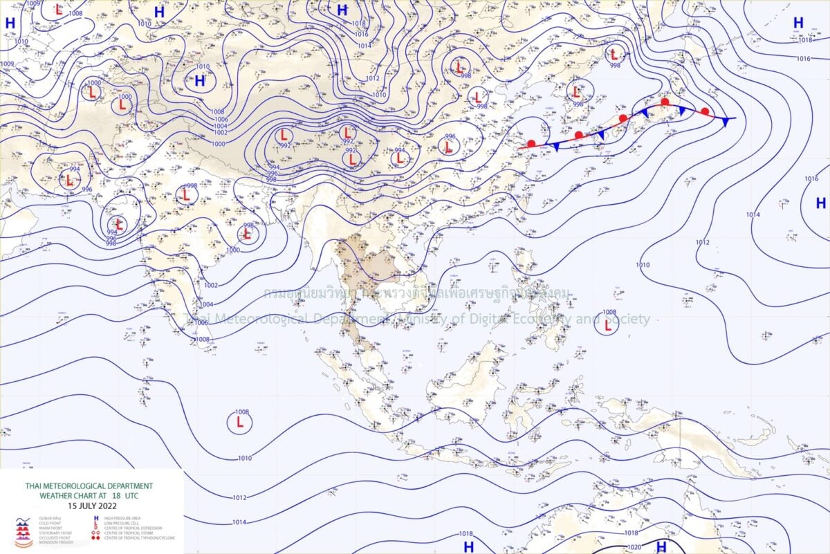 ลักษณะอากาศทั่วไป พยากรณ์อากาศ 24 ชั่วโมงข้างหน้า มรสุมตะวันตกเฉียงใต้กำลังปานกลางพัดปกคลุมทะเลอันดามัน ประเทศไทย และอ่าวไทย ลักษณะเช่นนี้ทำให้ประเทศไทยมีฝนลดลง แต่ยังคงมีฝนตกหนักบางแห่งบริเวณภาคกลาง ภาคตะวันออก และภาคใต้ฝั่งตะวันตก ขอให้ประชาชนที่อาศัยอยู่ในบริเวณดังกล่าว โดยเฉพาะที่ลาดเชิงเขาใกล้ทางน้ำไหลผ่านและพื้นที่ลุ่ม ระวังอันตรายจากฝนตกหนักและฝนที่ตกสะสมซึ่งอาจทำให้เกิดน้ำท่วมฉับพลันและน้ำป่าไหลหลากไว้ด้วย