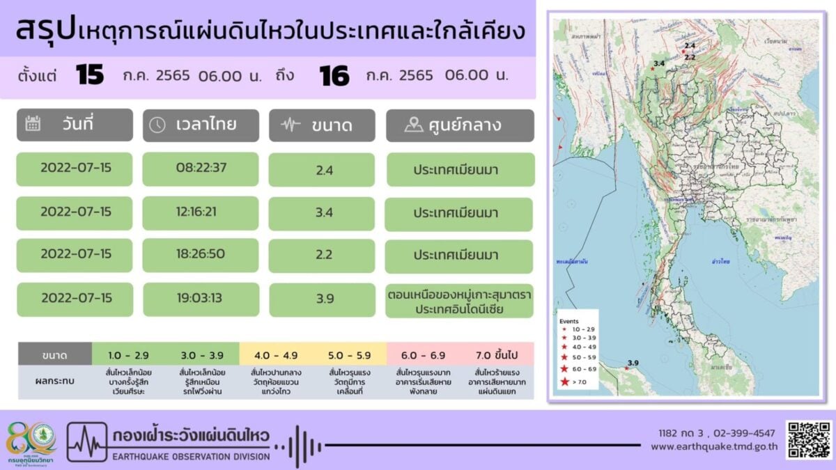 สำหรับสถานการณ์แผ่นดินไหวในช่วงวันที่ 15-16 กรกฎาคม 2565 ตรวจพบเหตุการณ์แผ่นดินไหว