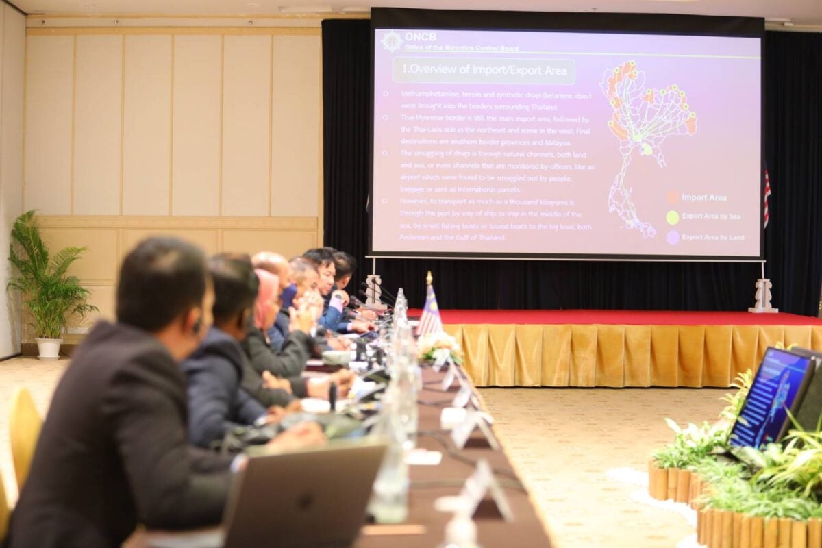 โดยในช่วงเช้าเป็นการประชุมระดับปฏิบัติการ (Operation Level) ซึ่งนายวิชัย ไชยมงคล เลขาธิการ ป.ป.ส. มอบหมายให้ นายปฤณ เมฆานันท์ นักสืบสวนสอบสวนเชี่ยวชาญ ในฐานะประธานร่วม กับผู้แทนฝ่ายมาเลเซีย นาย ACP Choong Kok See ผู้ช่วยผู้อำนวยการสำนักวิเคราะห์ข่าวกรอง NCID ซึ่งที่ประชุมได้ รับทราบสถานการณ์ยาเสพติดของประเทศไทยและมาเลเซีย โดยในปัจจุบันมีแนวโน้มพบสถานการณ์การลักลอบนำเข้าและส่งออกกัญชาระหว่างชายแดนไทยและมาเลเซียเพิ่มมากขึ้น รวมทั้งการแลกเปลี่ยนข้อมูลข่าวสารทั้งเรื่องประมวลกฎหมายยาเสพติด และการปลดล็อคพืชยาเสพติดในไทย