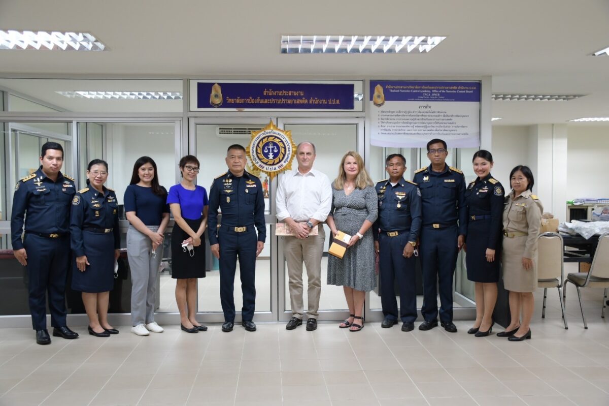 นายวิชัย ไชยมงคล เลขาธิการคณะกรรมการป้องกันและปราบปราบยาเสพติด (เลขาธิการ ป.ป.ส.) เป็นประธานให้การต้อนรับ Ms.Jacquelyn Vallack ผู้เชี่ยวชาญด้านการบังคับใช้กฎหมายและการพัฒนาหลักสูตรการฝึกอบรมด้านการบังคับใช้กฎหมายของ UNODC และ Mr.Reiner Pungs ผู้แทน UNODC แผนงานยาเสพติดและสารตั้งต้น ศึกษาดูงานวิทยาลัยป้องกันและปราบปรามยาเสพติดระหว่างประเทศ (วปส.) ในระหว่างวันที่ 19-21 กรกฎาคม 2565 พร้อมเยี่ยมคารวะและหารือข้อราชการ ณ วิทยาลัยป้องกันและปราบปรามยาเสพติด (วปส.) จังหวัดเชียงราย