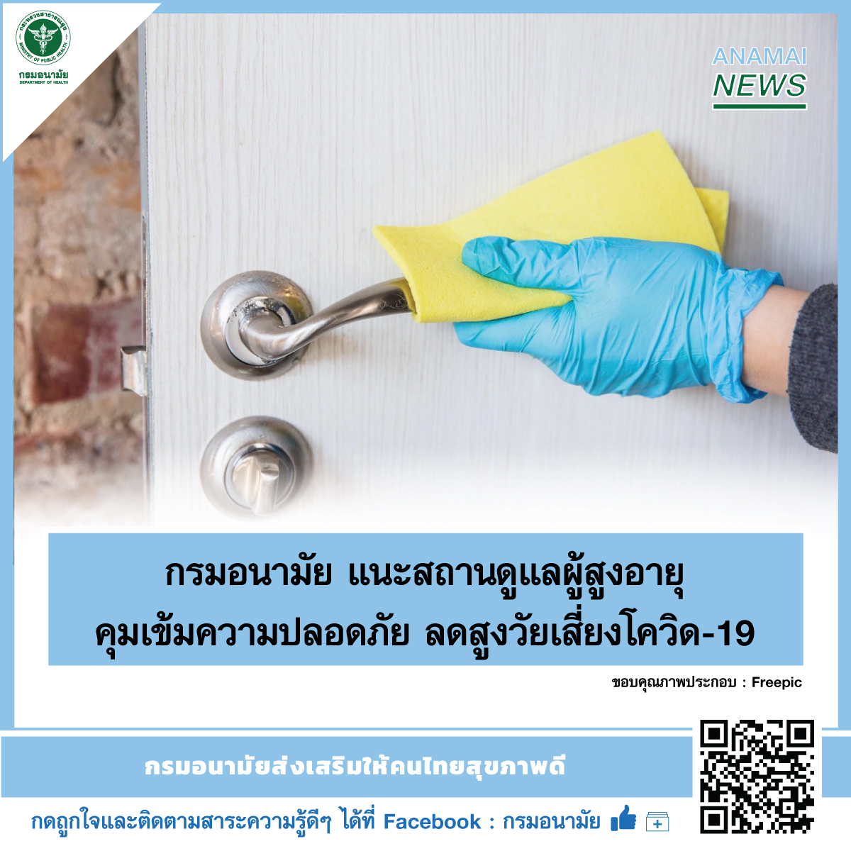 กรมอนามัย แนะสถานดูแลผู้สูงอายุคุมเข้มความปลอดภัย ลดสูงวัยเสี่ยงโควิด-19