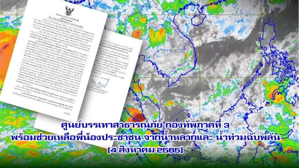 ศูนย์บรรเทาสาธารณภัย กองทัพภาคที่ 3 พร้อมช่วยเหลือพี่น้องประชาชน จากน้ำหลากและ น้ำท่วมฉับพลัน (4 สิงหาคม 2565)
