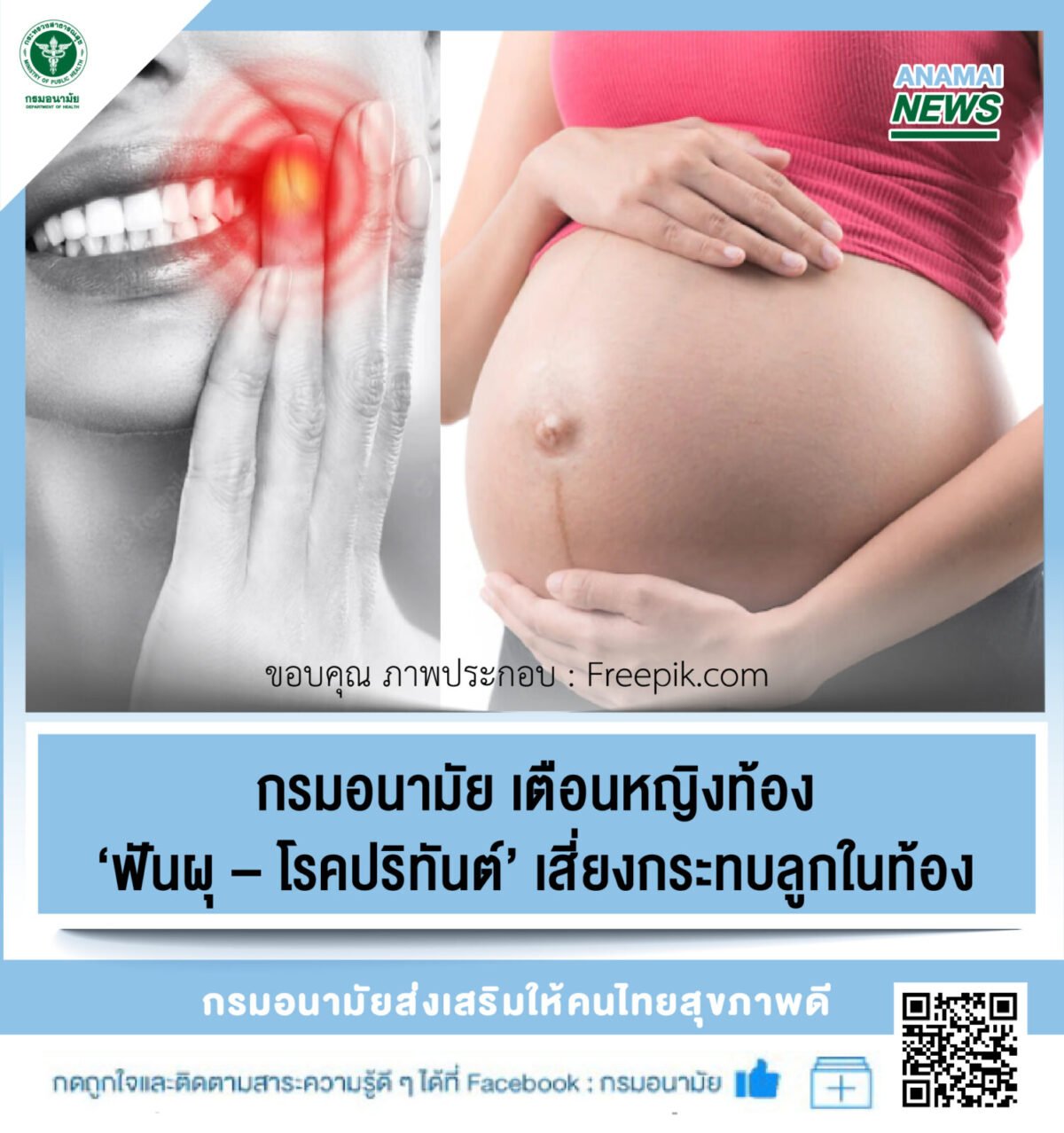 กรมอนามัย กระทรวงสาธารณสุข เตือนหญิงท้องฟันผุ หรือมีโรคปริทันต์ ทำให้มีโอกาสสูงถ่ายทอดเชื้อ จากแม่สู่ลูกได้ แนะช่วงท้องควรตรวจฟัน เพื่อให้รู้ถึงเรื่องการดูแลสุขภาพช่องปากของตนเอง