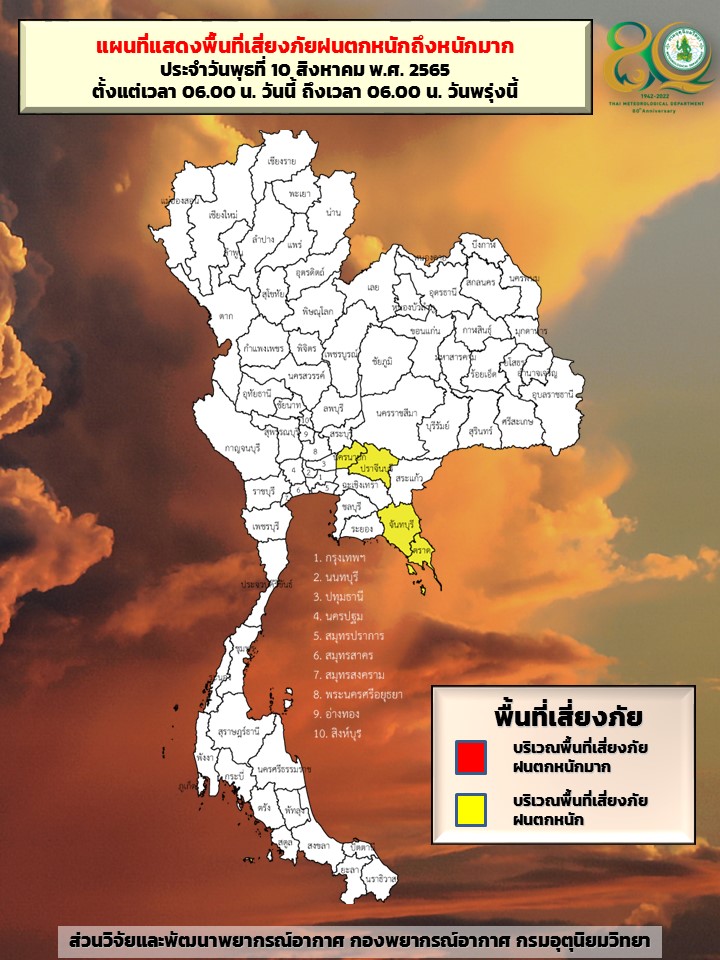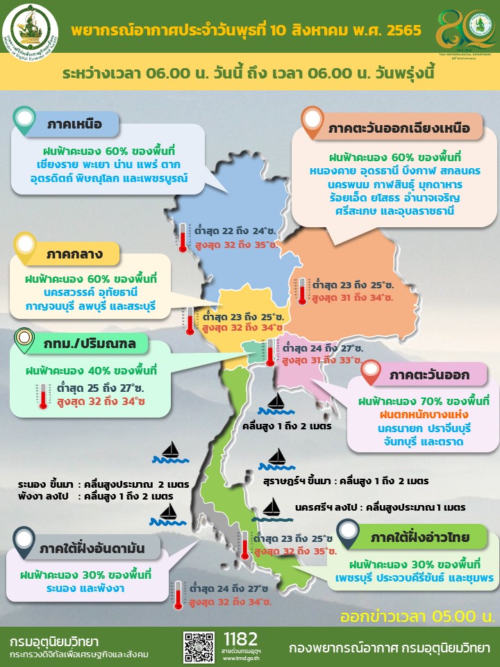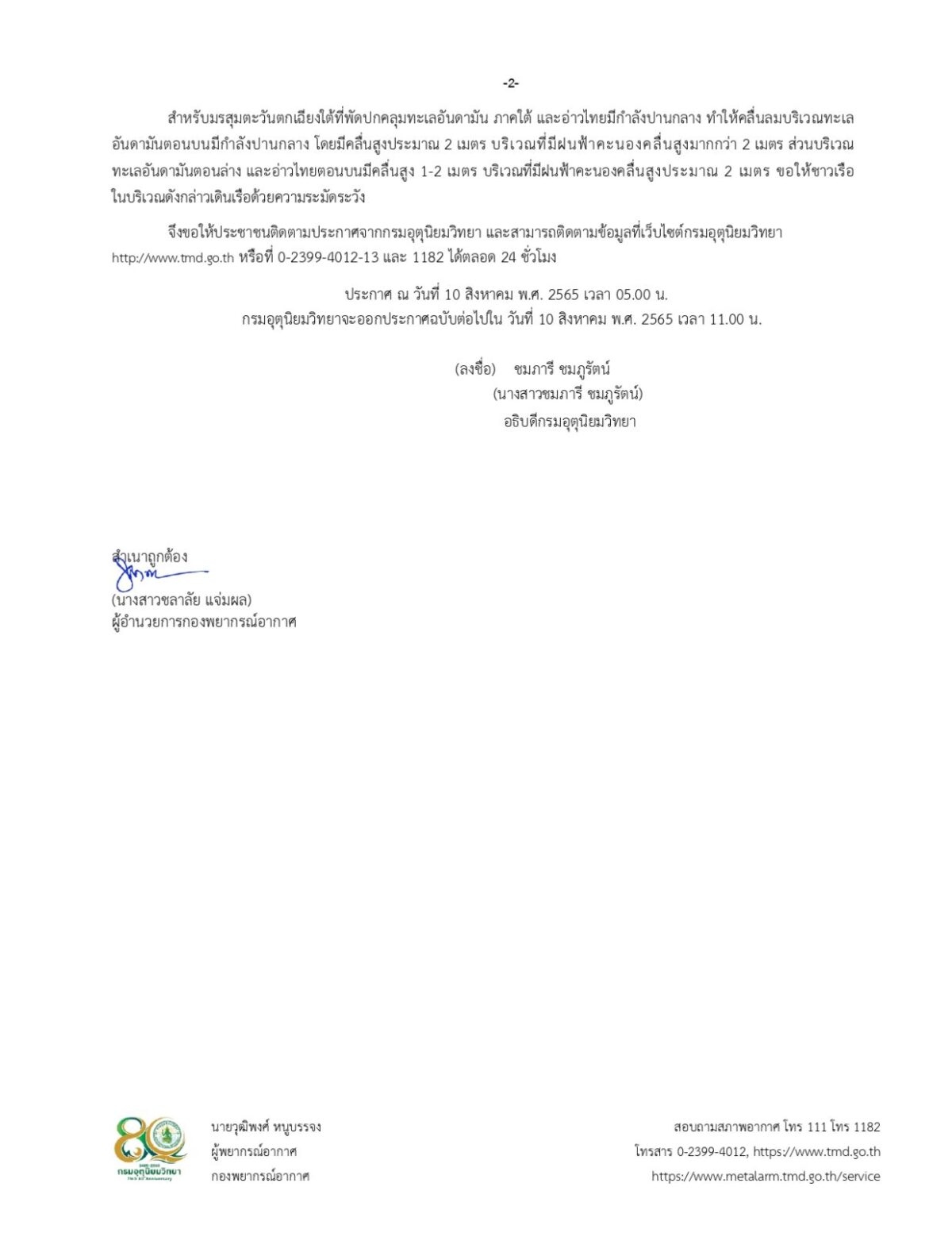 กรมอุตุนิยมวิทยาจะออกประกาศฉบับต่อไปใน วันที่ 10 สิงหาคม พ.ศ. 2565 เวลา 11.00 น.
