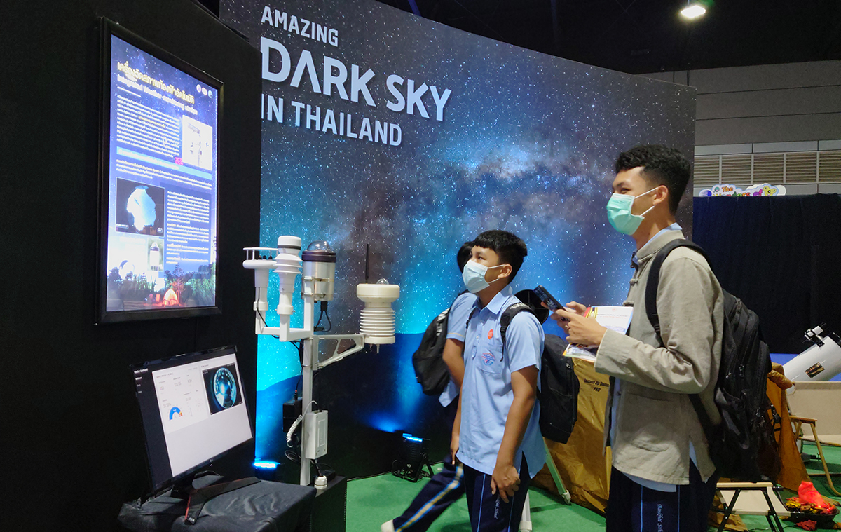 งานมหกรรมวิทย์ฯ ปีนี้ สดร. จัดบูธตั้งแคมป์ชวนดูดาว ภายใต้ โครงการ Amazing Dark Sky in Thailand หรือ เขตอนุรักษ์ท้องฟ้ามืดในประเทศไทย จัดแสดงนิทรรศการเกี่ยวกับแสงและการลดมลภาวะทางแสง รณรงค์ให้สังคมตระหนักรู้ถึงผลกระทบจากมลภาวะทางแสง และร่วมกันอนุรักษ์ท้องฟ้ายามค่ำคืน สนับสนุนให้ประชาชนใช้แสงสว่างให้เกิดประโยชน์สูงสุดและส่งผลกระทบน้อยที่สุด เพื่อคืนธรรมชาติให้กับสิ่งมีชีวิต