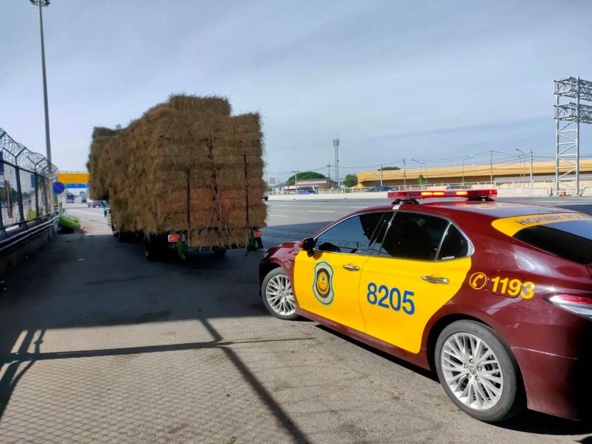 วันที่ 24 ส.ค.65 เวลาประมาณ 09.00 น. ส.ทล.2 กก.8 บก.ทล. หน่วยบริการตำรวจทางหลวงทับช้างได้ออกอำนวยการจราจรในเขตรับผิดชอบ พบรถกระบะบรรทุกฟางลักษณะยื่นยาวออกมานอกตัวรถเกินที่กฎหมายกำหนด เสี่ยงต่อการร่วงหล่น และอาจก่อให้เกิดอันตรายต่อผู้ใช้ทาง จึงได้เรียกตรวจสอบ
