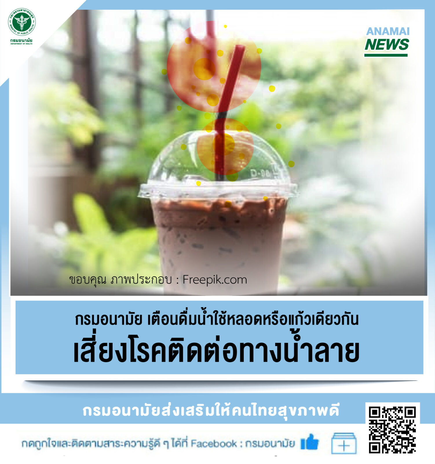 กรมอนามัย กระทรวงสาธารณสุข เตือนดื่มน้ำใช้หลอดหรือแก้วเดียวกัน เป็นพฤติกรรมที่ทำให้เสี่ยงโรคติดต่อทางน้ำลาย แนะเลี่ยงพฤติกรรมเสี่ยง