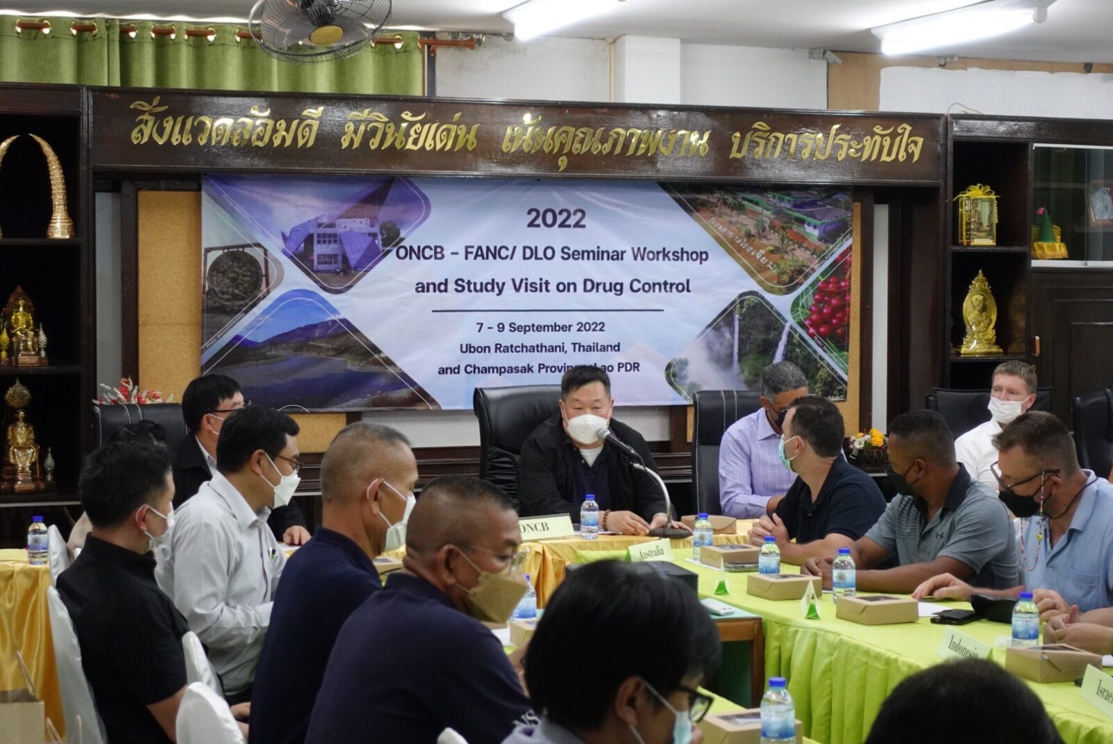 โดยมี นายวิชัย ไชยมงคล เลขาธิการ ป.ป.ส. พร้อมด้วย นายธนากร คัยนันท์ รองเลขาธิการ ป.ป.ส. และคณะเจ้าหน้าที่ประสานงานยาเสพติดต่างประเทศประจำประเทศไทย (Foreign Anti-Narcotics Community-FANC) นำโดย Mr. Christopher A. Cantrell ประธาน FANC Mr. Carsten Atentoft Anderson รองประธาน Mr. Max Lenormand เลขานุการ FANC และเจ้าหน้าที่ประสานงานยาเสพติดต่างประเทศประจำประเทศไทย เข้าร่วมฯ ซึ่งจัดขึ้นระหว่าง วันพุธที่ 7 กันยายน – วันศุกร์ที่ 9 กันยายน 2565 ณ จ.อุบลราชธานี และแขวงจำปาสัก สาธารณรัฐประชาธิปไตยประชาชนลาว