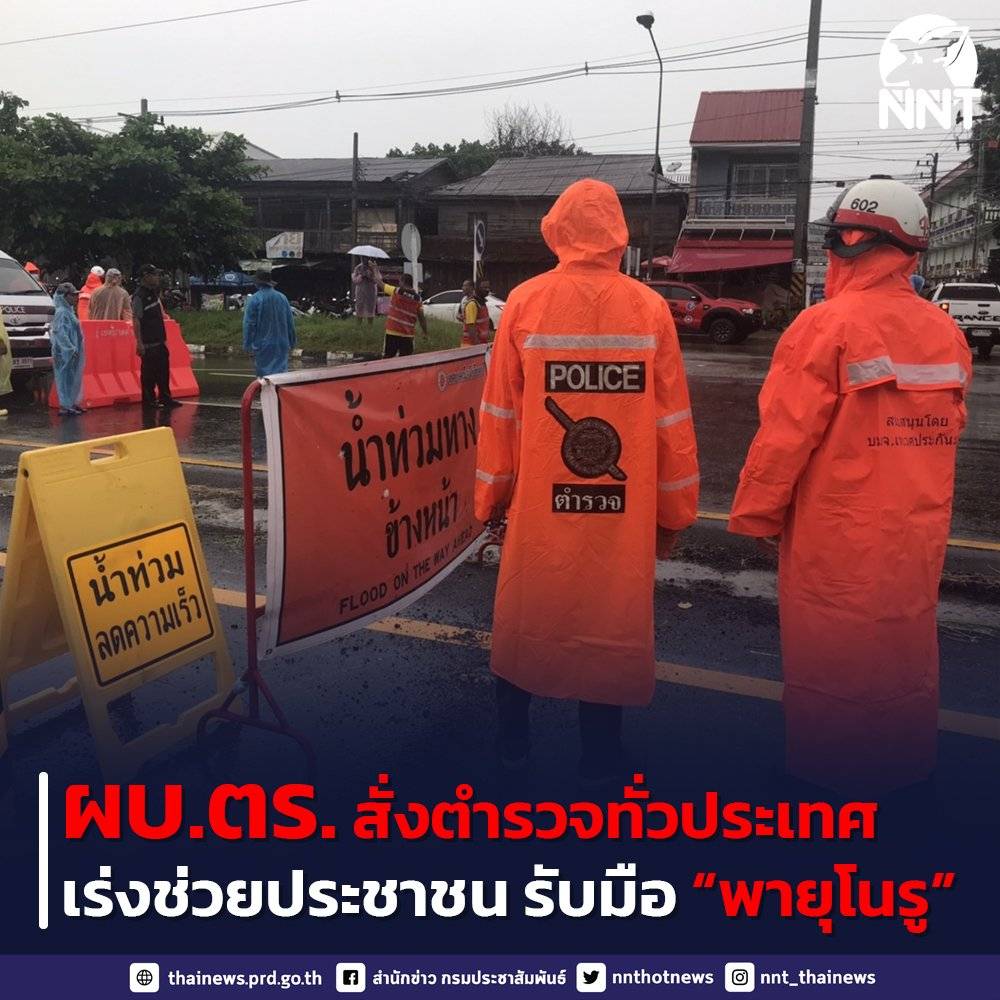ผบ.ตร. สั่งตำรวจทั่วประเทศ เร่งช่วยประชาชน รับ “พายุโนรู” แนะนำช่องทาง โทรสายด่วน ทวิตฯ เฟซบุ๊ก เช็กเส้นทางน้ำท่วม ขอความช่วยเหลือโทร 191 หรือ 1599 ตลอด 24 ชั่วโมง
