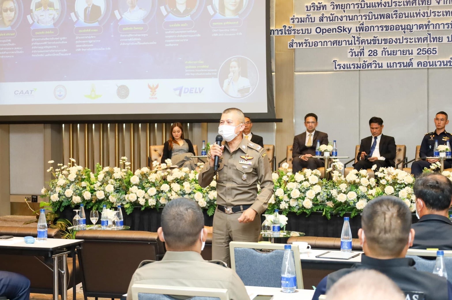 จากนั้น นางสิริเกศ เนียมลอย ผู้อำนวยการใหญ่ (บริหารจราจรทางอากาศ) บวท. เป็นประธานเปิดงานเสวนา Thailand UTM Forum 2022 โดย บวท. ได้ร่วมมือกับสำนักงานการบินพลเรือนแห่งประเทศไทย (กพท.) และมีผู้ทรงคุณวุฒิจากหน่วยงานภาครัฐและเอกชนที่เกี่ยวข้องเข้าร่วมเสวนาฯ ประกอบด้วย สำนักงานการบินพลเรือนแห่งประเทศไทย (กพท.) สำนักงานคณะกรรมการกิจการกระจายเสียง กิจการโทรทัศน์ และกิจการโทรคมนาคมแห่งชาติ (กสทช.) กองบัญชาการตำรวจนครบาล สำนักงานตำรวจแห่งชาติ สำนักยุทธการและการฝึก กรมยุทธการทหารอากาศ กองทัพอากาศ ร่วมนำเสนอแนวทางการส่งเสริมการใช้งานระบบ OpenSky เพื่ออำนวยความสะดวกในการขออนุญาตทำการบินโดรน พื้นที่เขตกรุงเทพมหานครและปริมณฑล หรือ Bangkok Control Zone