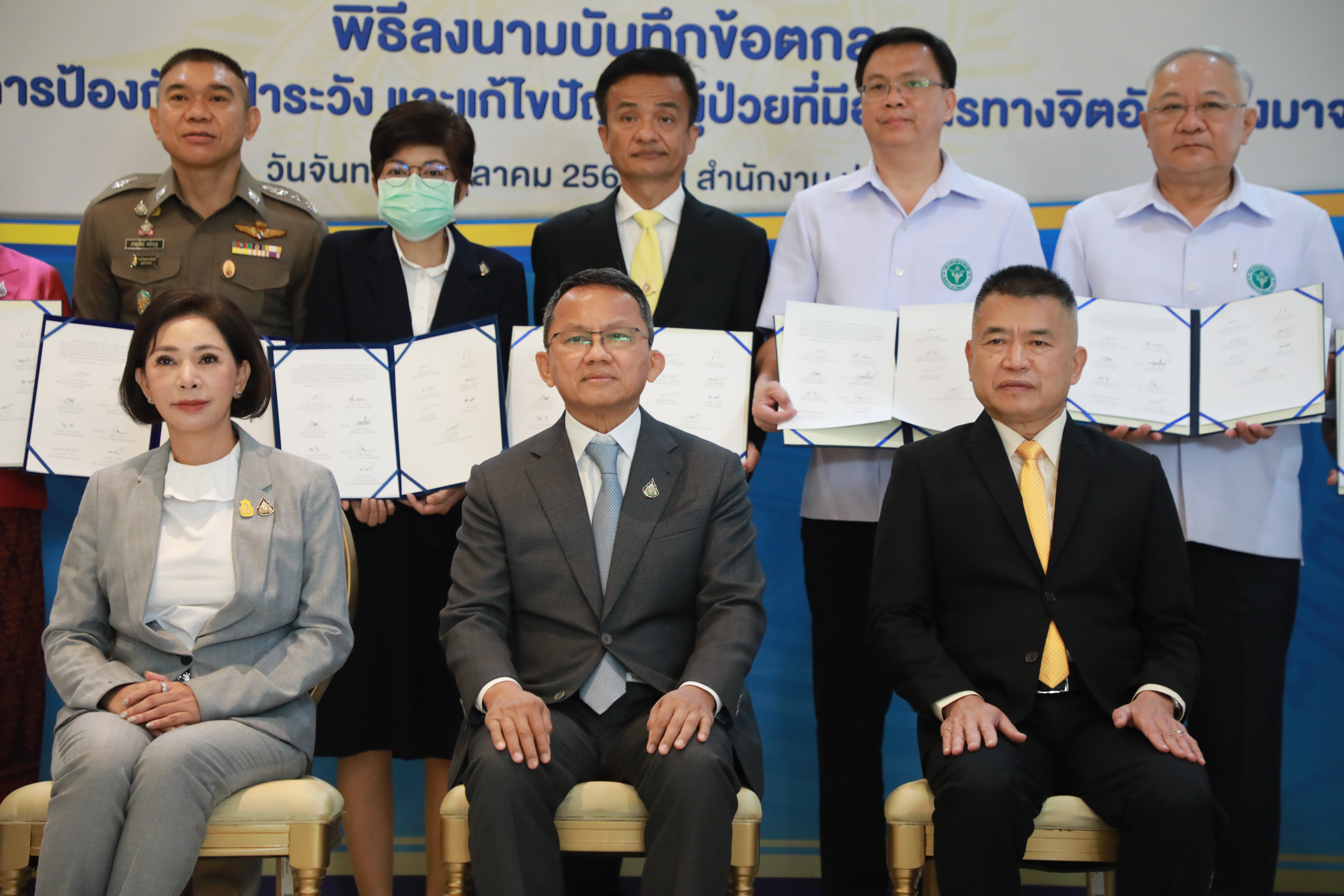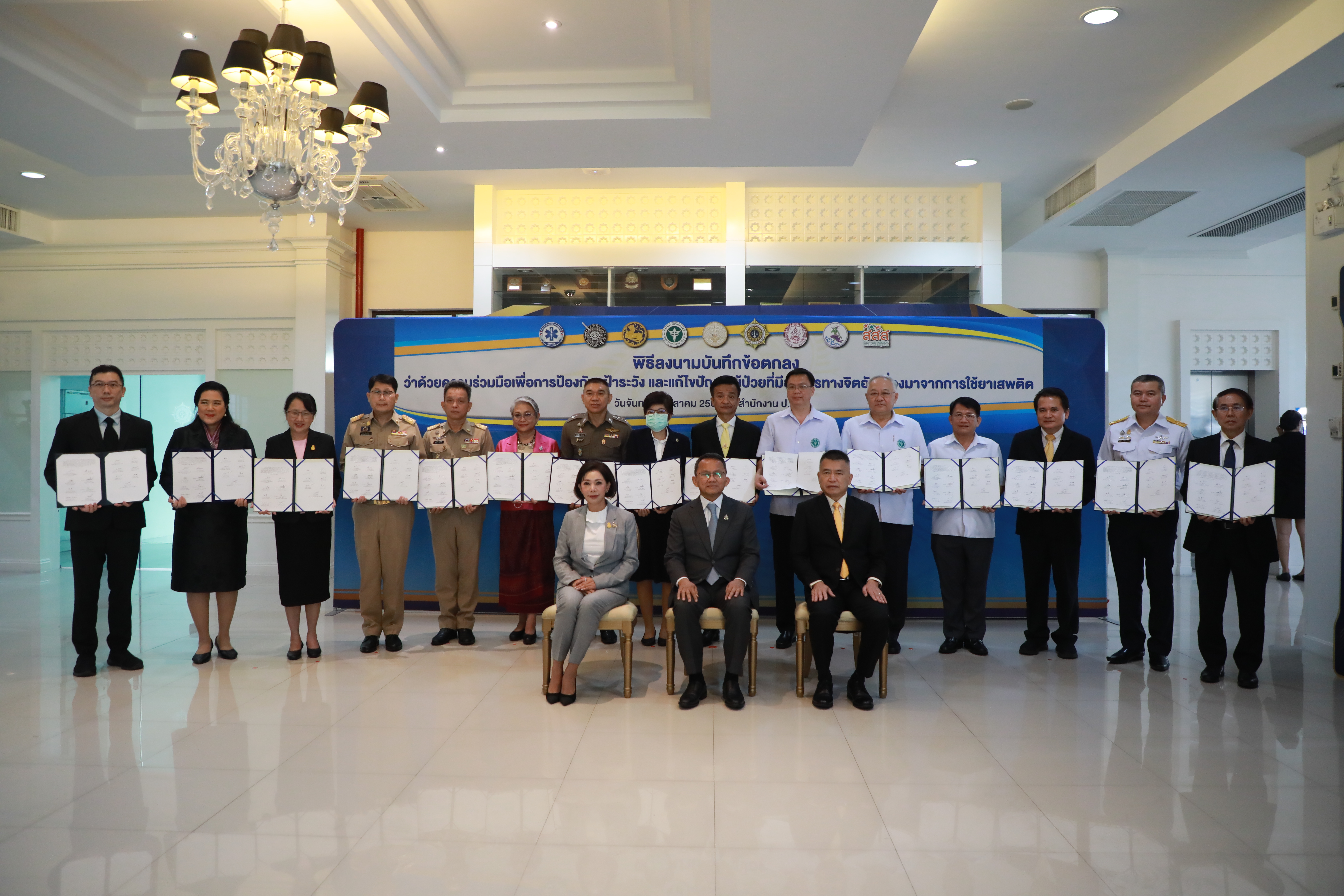 โดยนายสมศักดิ์ กล่าวว่า จากบันทึกข้อตกลงว่าด้วยความร่วมมือ การแก้ปัญหา ผู้มีอาการทางจิต จากการใช้ยาเสพติด ร่วมกันของ 15 หน่วยงาน เมื่อวันที่ 6 มีนาคม 2562 ปัจจุบัน มีผลสิ้นสุดลงแล้ว ตั้งแต่วันที่ 30 กันยายน 2565 จึงทำให้เกิดการลงนามร่วมกันอีกครั้งในวันนี้ เพราะจากข้อมูล การบำบัดรักษาและฟื้นฟูผู้ติดยาเสพติดของประเทศ พบว่า มีสัดส่วนผู้เข้ารับการบำบัด และใช้ยารักษาโรคทางจิตเวชร่วม เพิ่มขึ้นทุกปี โดยปี 2565 มีจำนวน 8,871 คน ส่งผลให้ผู้มีอาการทางจิต จากการใช้ยาเสพติด มีแนวโน้มก่อความเดือดร้อนให้กับสังคม เพิ่มขึ้นอย่างต่อเนื่อง โดยจากข้อมูลของศูนย์ปฏิบัติการสำนักงาน ป.ป.ส. ปี 2565 พบว่า มีข่าวผู้ใช้ยาเสพติด ก่อเหตุ จำนวน 731 ข่าว เพิ่มจากปี 2564 เป็น 2 เท่า ที่มีเพียงจำนวน 307 ข่าว
