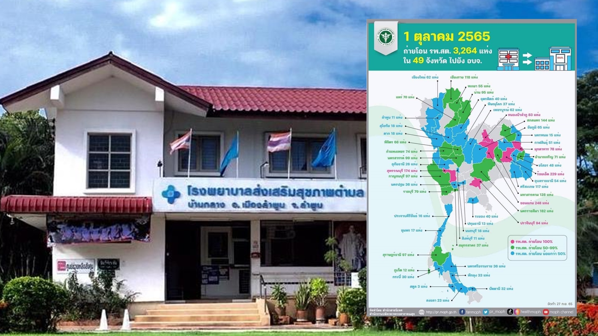 นายเลอพงศ์ ลิ้มรัตน์ ประธานคณะอนุกรรมการบริหารภารกิจถ่ายโอนด้านสาธารณสุข ให้แก่องค์กรปกครองส่วนท้องถิ่น (อปท.) เปิดเผยว่าตั้งแต่ 1 ต.ค. 65 นี้ โรงพยาบาลส่งเสริมสุขภาพตำบล (รพ.สต.) จำนวน 3,264 แห่ง ต้องถ่ายโอนไป อบจ. ทั้งหมด