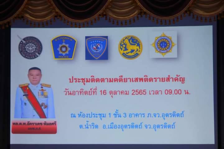 รอง ผบช.ภ.6 ได้เดินทางมาตรวจเยี่ยม ภ.จว.อุตรดิตถ์ เพื่อติดตามคดีจับกุมยาเสพติด และประชุมมอบนโยบายการบริหารราชการ โดยได้เป็นประธานในพิธีแถลงข่าวการจับกุมผู้ต้องหาคดียาเสพติดพร้อมของกลาง จำนวน 3 คดี
