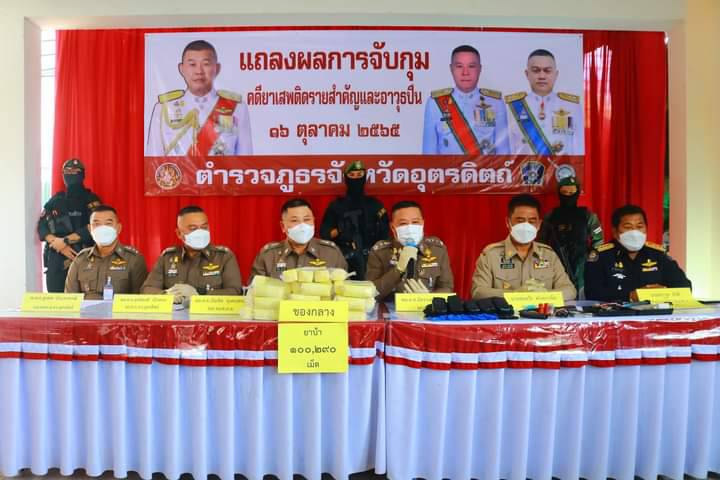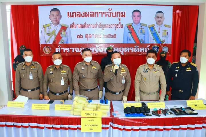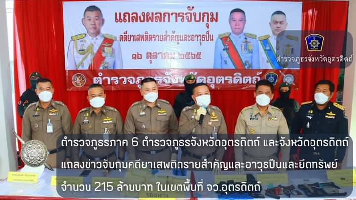 บชภ.6 ร่วม ภ.จว.อุตรดิตถ์ แถลงผลการจับกุมคดียาเสพติดรายสำคัญยึดทรัพย์ 215 ล้านบาท