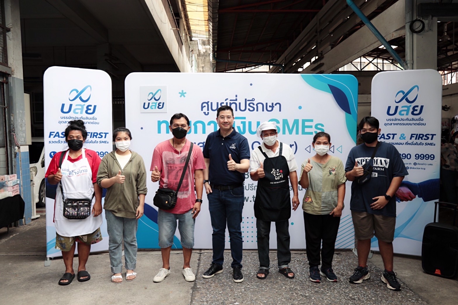 ในวันนี้ (28 ต.ค.) บสย. ได้จัดกิจกรรมเดินตลาด ณ ตลาดนัดรวมยาง เทเวศร์ ตรงข้ามธนาคารแห่งประเทศไทย เพื่อประชาสัมพันธ์ สร้างการรับรู้ และเชิญชวนผู้ประกอบการ SMEs เข้าร่วมงาน “มหกรรมร่วมใจแก้หนี้สัญจร” “มีหนี้ต้องแก้ไข เริ่มต้นใหม่อย่างยั่งยืน” ซึ่งเป็นโครงการที่ ธนาคารแห่งประเทศไทย และ กระทรวงการคลัง ให้ความช่วยเหลือกลุ่มลูกหนี้ทุกประเภท โดยมี นายสิทธิกร ดิเรกสุนทร กรรมการและผู้จัดการทั่วไป บรรษัทประกันสินเชื่ออุตสาหรรมขนาดย่อม (บสย.) กล่าวเปิดงานพร้อมด้วยคณะผู้บริหาร ที่ปรึกษาทางการเงิน บสย. F.A. Center และผู้บริหารธนาคารแห่งประเทศไทย ร่วมกิจกรรม