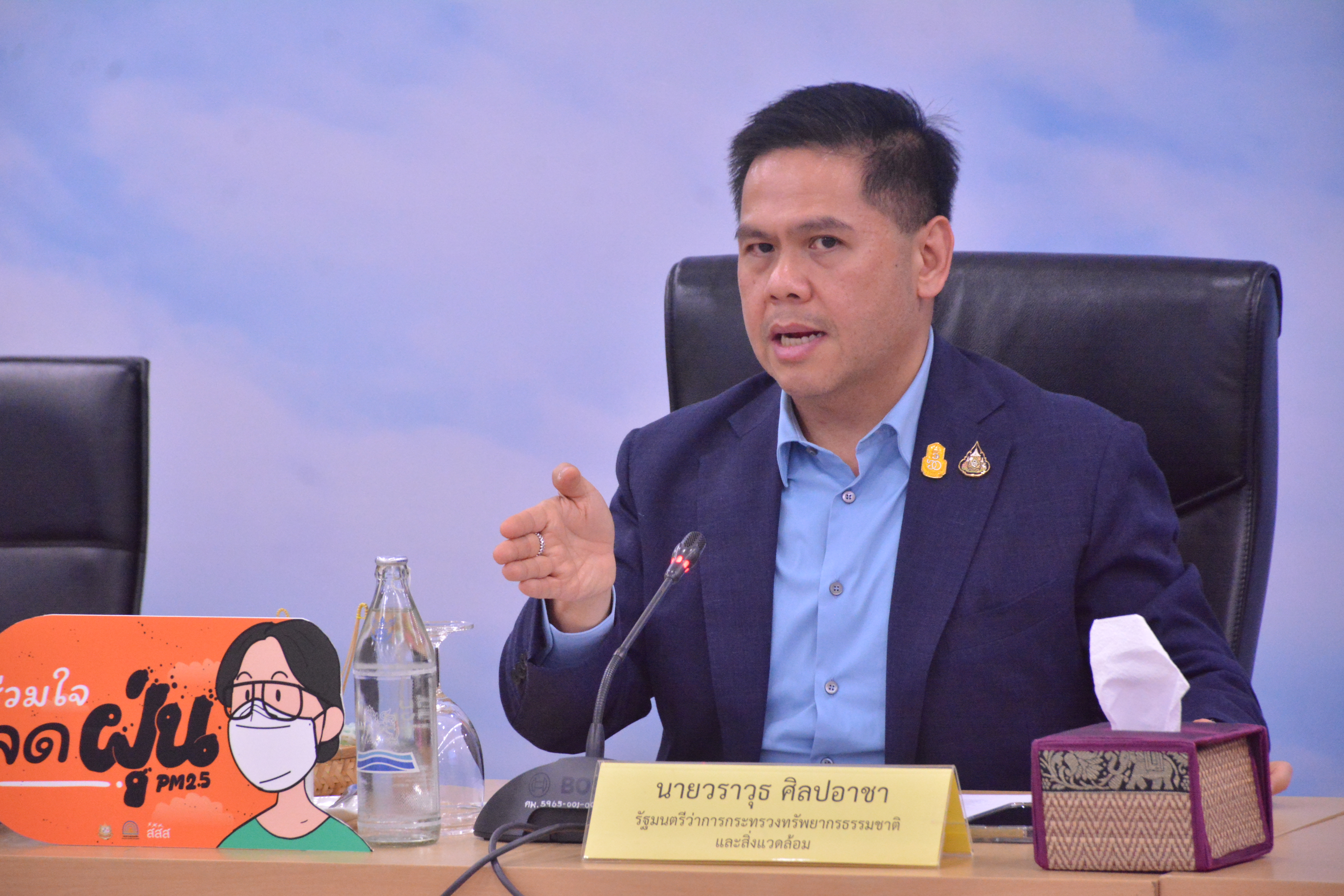 นายวราวุธ ศิลปอาชา รัฐมนตรีว่าการกระทรวงทรัพยากรธรรมชาติและสิ่งแวดล้อม (ทส.) เป็นประธานมอบนโยบายการป้องกันและแก้ไขปัญหาไฟป่า หมอกควัน และฝุ่นละออง ปี 2566 โดยมีนายจตุพร บุรุษพัฒน์ ปลัดกระทรวงทรัพยากรธรรมชาติและสิ่งแวดล้อม นายธีระพงษ์ วงศ์ศิวะวิลาส ปลัดสำนักนายกรัฐมนตรี นายปิ่นสักก์ สุรัสวดี อธิบดีกรมควบคุมมลพิษ (คพ.) ผู้แทนจากหน่วยงานต่างๆ ทั้งภาครัฐ และเอกชน ที่เกี่ยวข้อง พร้อมด้วยผู้แทนจากสำนักงานทรัพยากรธรรมชาติและสิ่งแวดล้อม 76 จังหวัด เข้าร่วมรับฟังนโยบาย โดย คพ. ได้สรุปภาพรวมสถานการณ์ฝุ่นละอองที่ดีขึ้นเมื่อเทียบปีที่ผ่านมาทั้งในกรุงเทพฯ ปริมณฑลและ 17 จังหวัดภาคเหนือ รวมถึงจำนวนจุดความร้อนของประเทศไทย 3 ปีที่ผ่านมา มีจำนวนลดลงถึง 80%