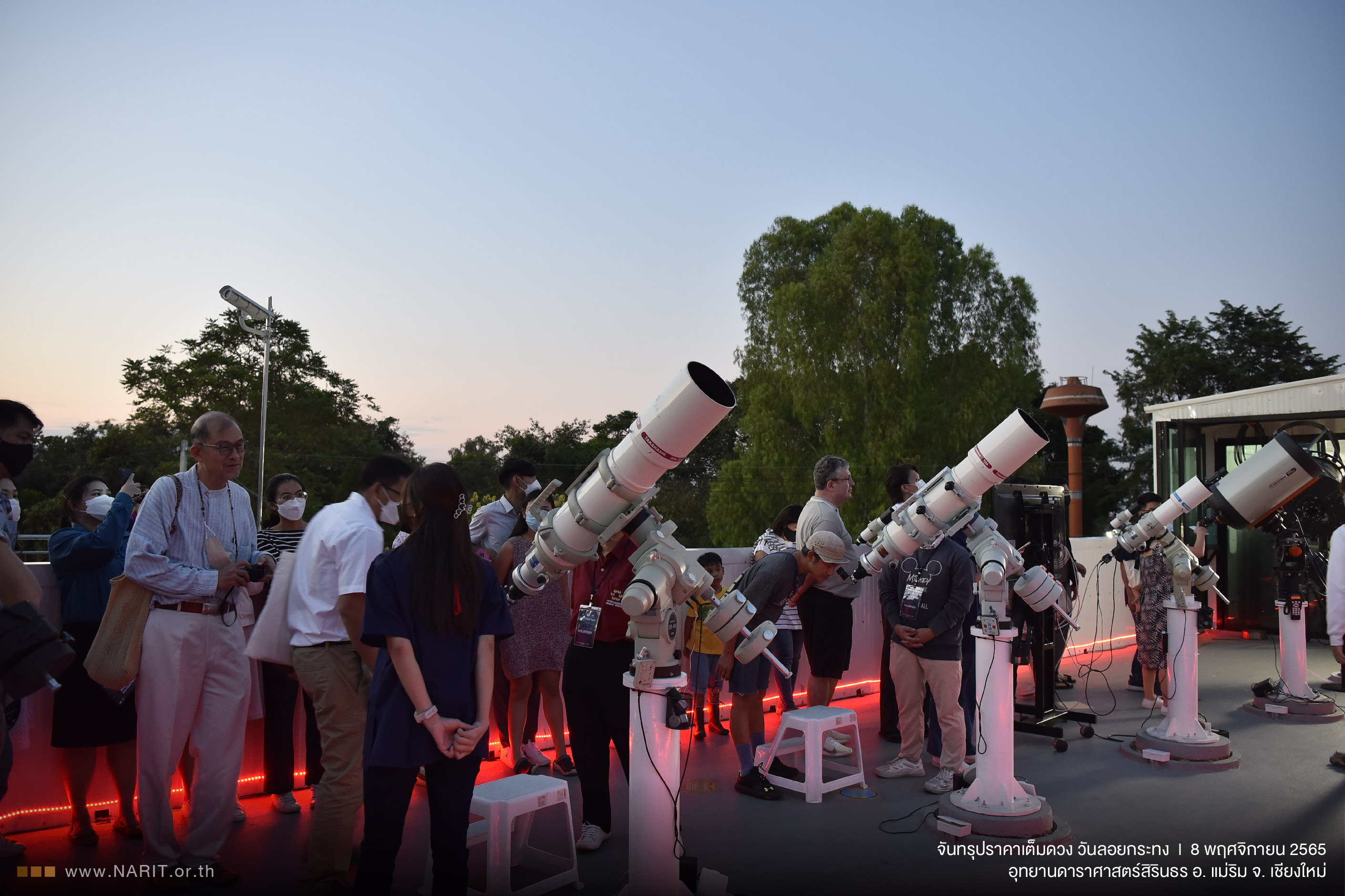 นายศุภฤกษ์ กล่าวเพิ่มเติมว่า สำหรับบรรยากาศการเฝ้าชมปรากฏการณ์จันทรุปราคาเต็มดวงเหนือฟ้าเมืองไทยในคืนวันลอยกระทงทั่วประเทศเป็นไปอย่างคึกคัก โดยเฉพาะที่หอดูดาว อุทยานดาราศาสตร์สิรินธร อ.แม่ริม จ.เชียงใหม่ มีประชาชนให้ความสนใจเข้าร่วมกิจกรรมเกือบพันคน ขณะเดียวกันทางสื่อสังคมออนไลน์ก็มีการแชร์ภาพปรากฏการณ์จากพื้นที่ต่าง ๆ ทั่วประเทศในหลากหลายช่องทาง ซึ่ง สดร. ได้จัดถ่ายทอดปรากฏการณ์จันทรุปราคาเต็มดวงผ่านทางเฟซบุ๊ก NARIT สถาบันวิจัยดาราศาสตร์แห่งชาติด้วย