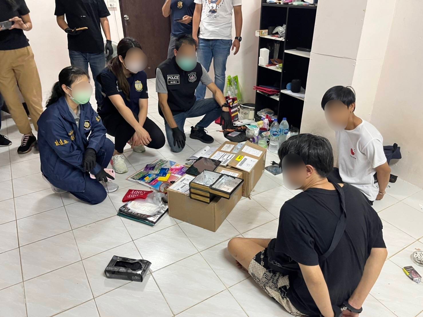 จากการตรวจค้นที่พักอาศัยของผู้ต้องหาทั้งสอง พบอุปกรณ์แบ่งบรรจุ ถุงซีล เทปกาว และกล่องพัสดุชนิดเดียวกันกับที่เจ้าหน้าที่ได้ทำการตรวจยึดไว้เป็นของกลาง จึงแจ้งข้อกล่าวหาว่า นำยาเสพติดให้โทษประเภท 1 (MDMA) เข้ามาในราชอาณาจักรโดยไม่ได้รับอนุญาต และมีไว้ในครอบครองซี่งยาเสพติดให้โทษประเภท 1 (MDMA) อันเป็นการกระทำเพื่อการค้า ก่อให้เกิดการแพร่กระจายในกลุ่มประชาชน และเป็นการทำให้เกิดผลกระทบต่อความมั่นคงของรัฐ หรือความปลอดภัยของประชาชนทั่วไป และนำตัวดำเนินคดีตามกฎหมายต่อไป ในส่วนยาชนิดเม็ดสีเหลืองไม่ทราบชนิด ตราหัวลิงจำนวน 290 เม็ดเจ้าหน้าที่จะทำการตรวจพิสูจน์ทางเคมี หากพบว่าเป็นยาเสพติดจะแจ้งข้อกล่าวหาผู้ต้องหาเพิ่มเติมต่อไป