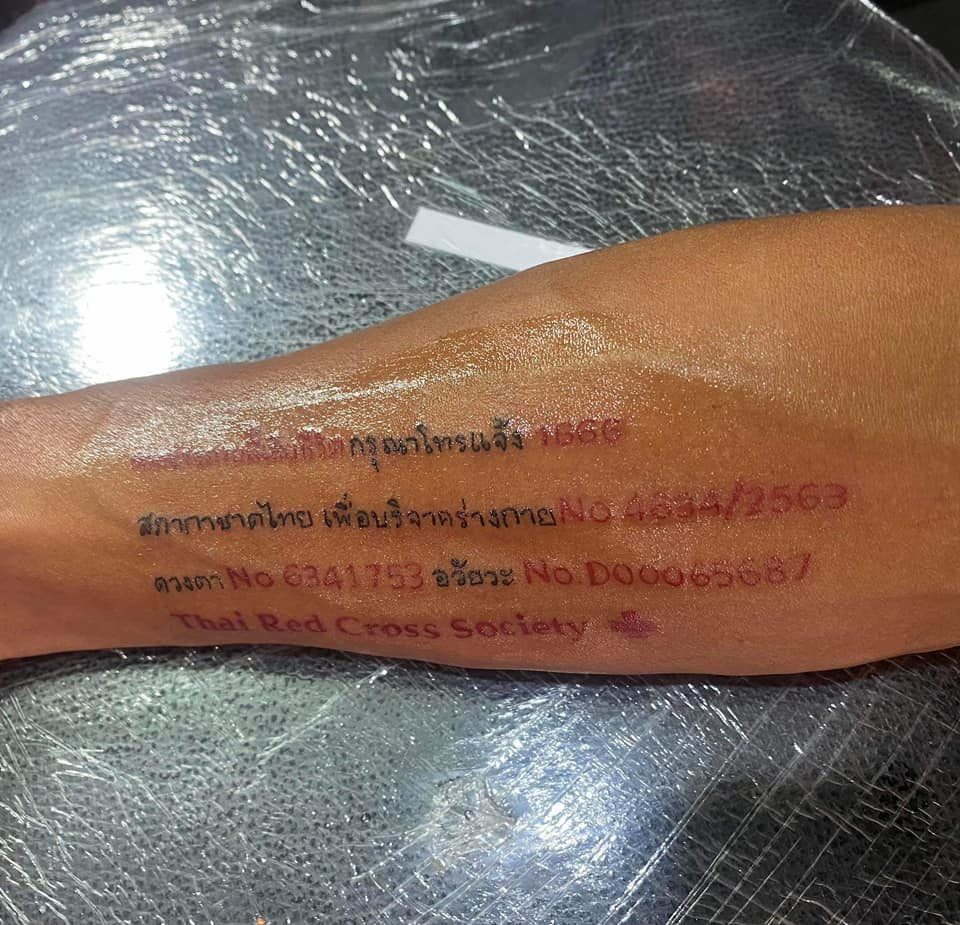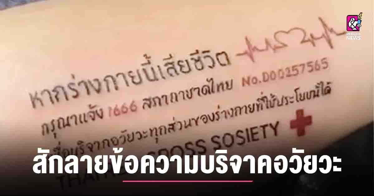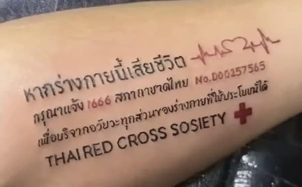 วันที่ 7 ธ.ค. 65 ผู้สื่อข่าวรายงานว่า จากกรณีที่มีคนชื่นชอบและรักศิลปะในการสักยันต์ ซึ่งมีความชอบแตกต่างกันไป บางรายชื่นชอบความงาม โชว์ลวดลายศิลปะการสักตามตัว แต่ปรากฏว่ามีคนอีกกลุ่มคนที่ได้บริจาคอวัยวะให้สภากาชาดไทย และมีบัตรบริจาคอวัยะ ได้เริ่มพากันมาสักข้อความการบริจาคไว้ตามแขน เพื่อที่กรณีเกิดการเสียชีวิตกระทันหัน ทางโรงพยาบาลที่พบเห็นข้อความดังกล่าว จะได้นำร่างกายไปทำประโยชน์ให้กับ คนที่ต้องการอวัยวะไปเปลี่ยนถ่าย ซึ่งถือเป็นการสักลายที่มีประโยชน์ เพราะบางครั้งผู้บริจาคร่างกายและอวัยวะ อาจลืมหรือไม่ได้พกบัตรออกนอกบ้าน