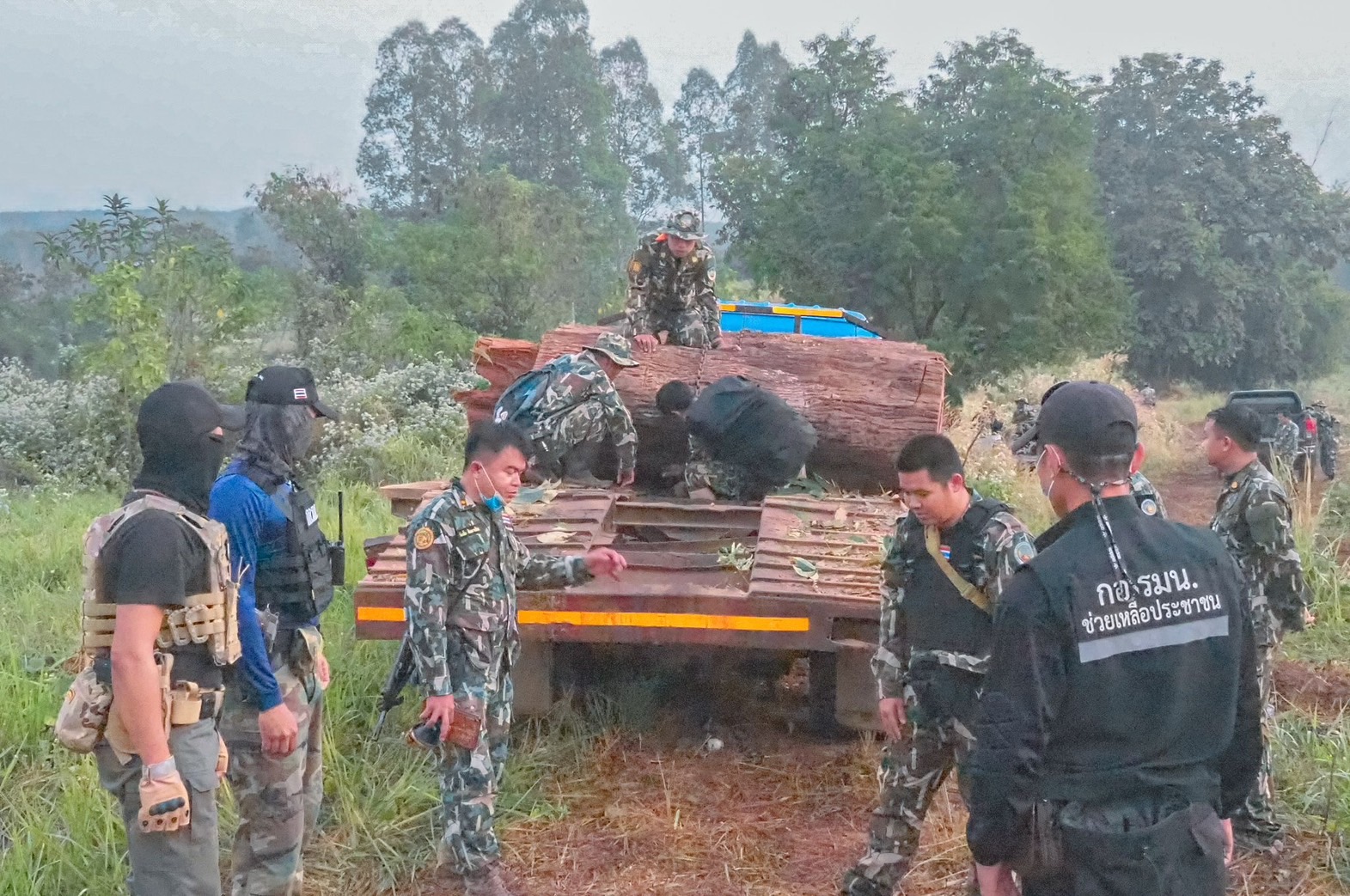 กอ.รมน. ร่วมหน่วยงานที่เกี่ยวข้องลงพื้นที่เข้าจับกุมขบวนการลักลอบตัดไม้ประดู่ในเขตรักษาพันธุ์สัตว์ป่าภูหลวง จ.เลย