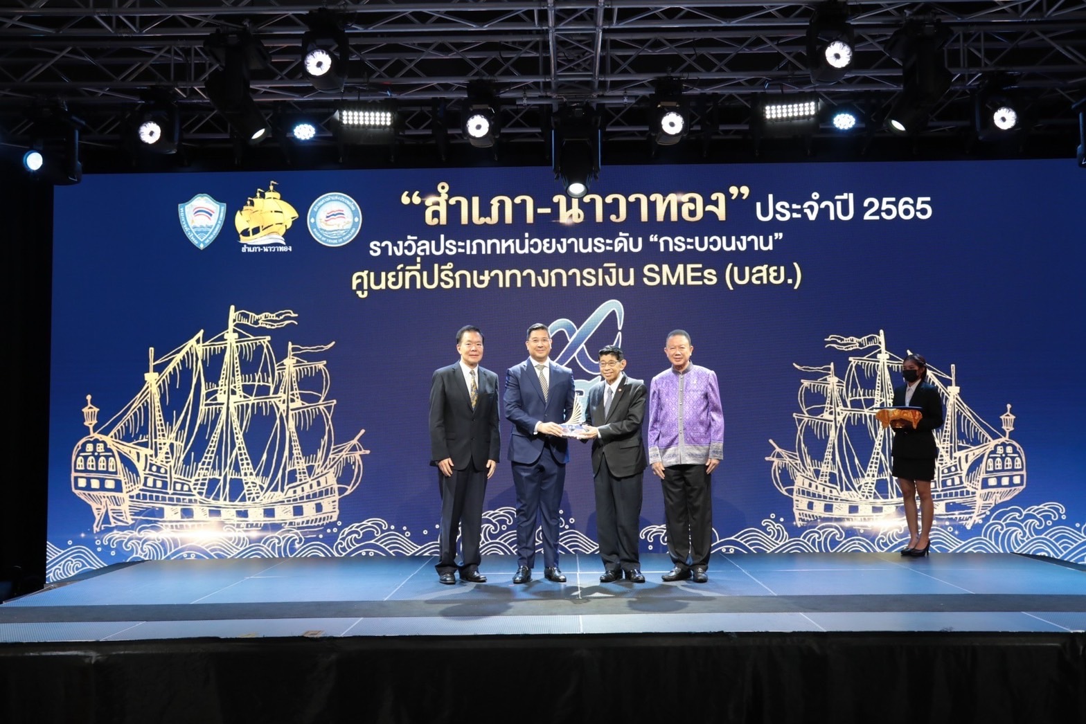 นายสิทธิกร ดิเรกสุนทร กรรมการและผู้จัดการทั่วไป บรรษัทประกันสินเชื่ออุตสาหกรรมขนาดย่อม (บสย.) รับรางวัลสุดยอดหน่วยงานภาครัฐ ด้านการอำนวยความสะดวกภาคธุรกิจ “สำเภา-นาวาทอง” ประจำปี 2565 กลุ่มหน่วยงานเพิ่มประสิทธิภาพ ประเภทหน่วยงานระดับ “กระบวนงาน” การดำเนินงานของ “ศูนย์ที่ปรึกษาทางการเงิน SMEs “ (บสย. F.A. Center) โดยได้รับเกียรติจาก ดร.วิษณุ เครืองาม รองนายกรัฐมนตรี เป็นประธานในพิธีมอบรางวัล ร่วมด้วย นายสนั่น อังอุบลกุล ประธานกรรมการ หอการค้าไทยและสภาหอการค้าแห่งประเทศไทย นายสุรงค์ บูลกุล รองประธานกรรมการ และประธานคณะกรรมการสนับสนุนการลงทุนและอำนวยความสะดวกในการดำเนินธุรกิจ จัดโดย หอการค้าไทยและสภาหอการค้าแห่งประเทศไทย เมื่อวันที่ 14 ธันวาคม 2565 ณ มหาวิทยาลัยหอการค้าไทย