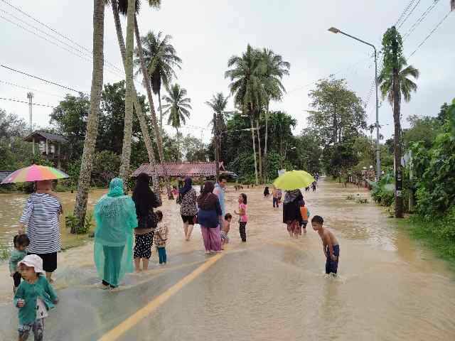 วันนี้ 19 สถานการณ์น้ำท่วมในพื้นที่จังหวัดยะลา ขณะนี้มีพื้นที่ได้รับผลกระทบแล้ว 6 อำเภอ ประกอบด้วย อำเภอเมือง กรงปินัง บันนังสตา ธารโต รามัน และยะหา โดยเบื้องต้นได้รับผลกระทบ 1,074 ครัวเรือน ราษฎร 5,035 คน อพยพ 16 ครัวเรือน 51 คน ขณะที่ฝนยังคงตกอย่างต่อเนื่อง ระดับน้ำทั้งแม่น้ำปัตตานี และแม่น้ำสายบุรี ล้นตลิ่ง ไหลเข้าท่วมพื้นที่ลุ่ม เจ้าหน้าที่เร่งช่วยเหลือ