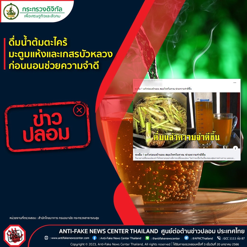 ข่าวปลอม อย่าแชร์! ดื่มน้ำต้มตะไคร้ มะตูมแห้งและเกสรบัวหลวงก่อนนอนช่วยความจำดี