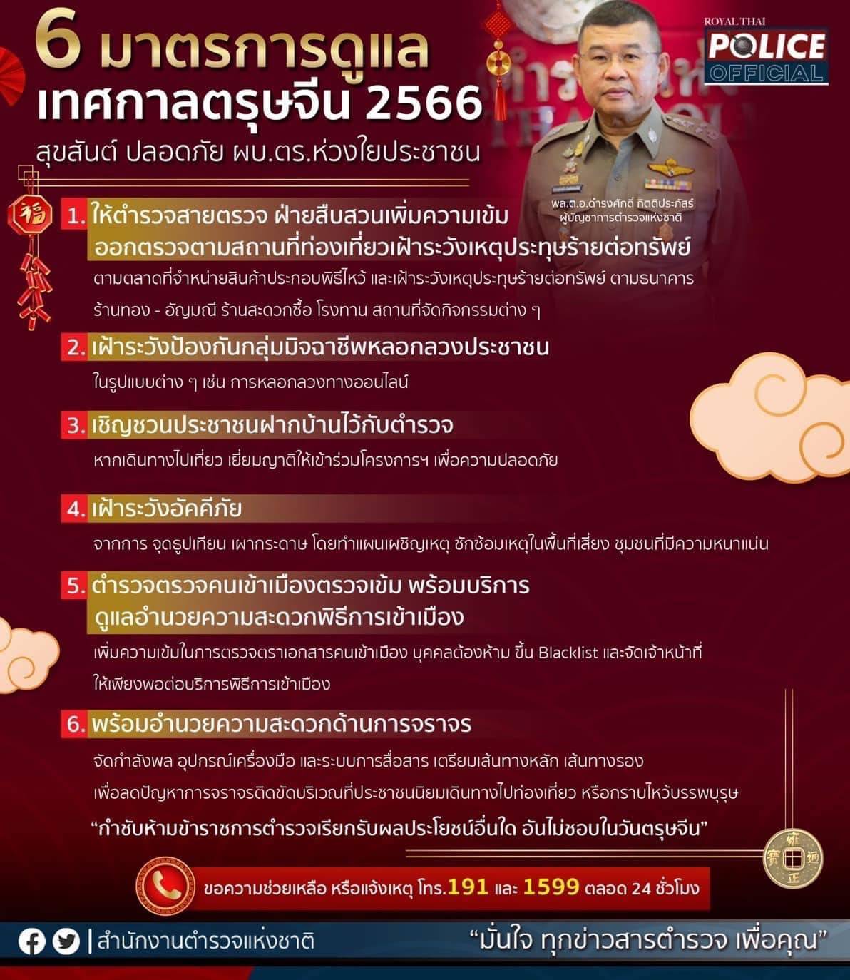 ทางสำนักงานตำรวจแห่งชาติ แนะ 6 มาตรการดูแล เทศกาลตรุษจีน 2566
