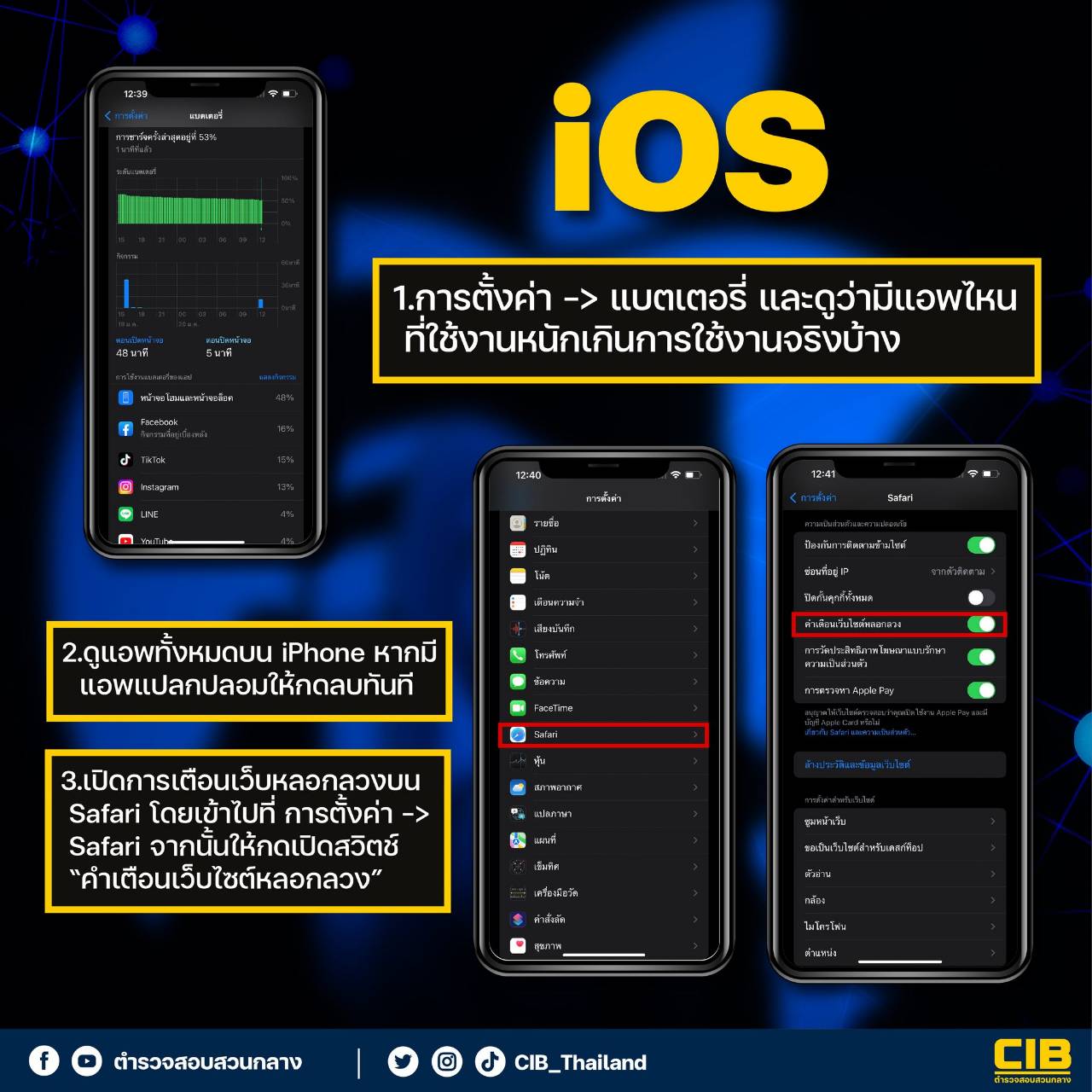 ส่วน กองบัญชาการตำรวจสืบสวนสอบสวนอาชญากรรมทางเทคโนโลยี แจ้งเตือนวิธีเช็กมือถือ iOS ถูกติดตั้งแอปรีโมทดูดเงินหรือไม่