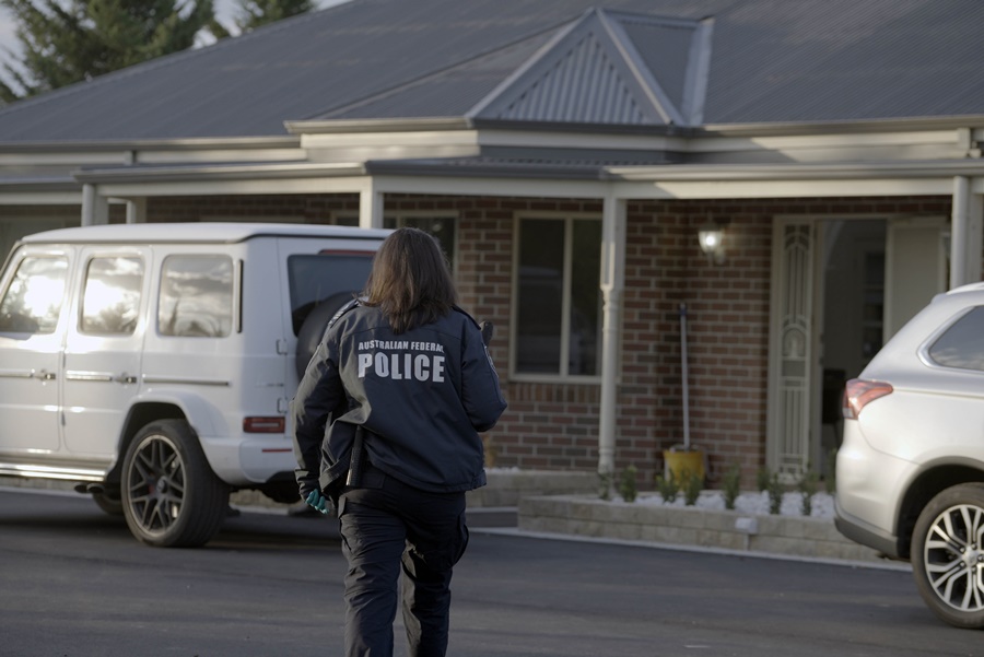 ภาพการตรวจยึดทรัพย์สินของผู้ต้องหาทั้งสอง ประมาณ 45 ล้านเหรียญออสเตรเลีย หรือ 1 พันล้านบาท