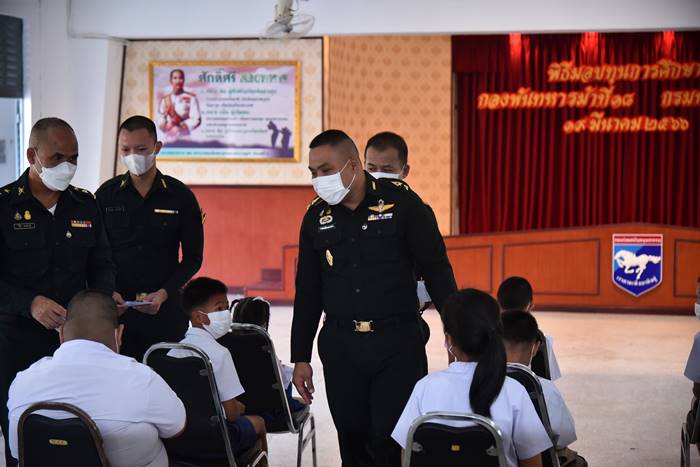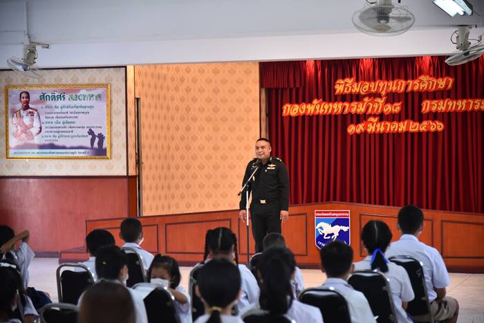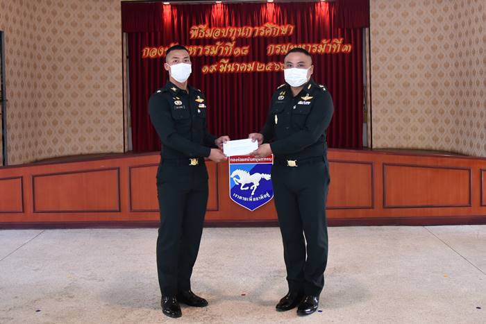 วันที 19 มีนาคม 2566 เวลา 10.00 น. พันโท ศราวุฒิ อุนจะนำ ผู้บังคับกองพันทหารม้าที่ 18 กรมทหารม้าที่ 3 เป็นประธานในพิธีมอบทุนการศึกษาให้แก่บุตรกำลังพลภายในหน่วย เนื่องในวันคล้ายวันสถาปนากองพันทหารม้าที่ 18 กรมทหารม้าที่ 3 ครบรอบปีที่ 43 โดยมี คณะนายทหารสัญญาบัตร กำลังพล และครอบครัวเข้าร่วมพิธี ณ กองร้อยสนับสนุนการรบ กองพันทหารม้าที่ 18 กรมทหารม้าที่ 3 สำหรับพิธีมอบทุนการศึกษานั้น ได้กระทำขึ้นเพื่อส่งเสริมด้านการศึกษาให้กับบุตรของกำลังพลของหน่วย เสริมสร้างขวัญ และกำลังใจให้กับกำลังพล ตลอดจนเป็นการแบ่งเบาภาระค่าใช้จ่ายในการศึกษาให้กับครอบครัวของกำลังพล ซึ่งมีจำนวนบุตรที่ได้รับทุนจำนวน 204 ทุน แบ่งเป็นระดับชั้น อนุบาล – ประถมศึกษา จำนวน 138 ทุน ระดับชั้นมัธยมศึกษา จำนวน 50 ทุน และระดับ ปวส. – ปริญญาตรี จำนวน 16 ทุน โดยผู้บังคับกองพันทหารม้าที่ 18 กรมทหารม้าที่ 3 ได้กล่าวให้โอวาท เพื่อเป็นแนวทางในการปฏิบัติตนแก่บุตรผู้รับทุนการศึกษา เพื่อให้บุตรกำลังพลนั้นมีกำลังใจ มีความมุมานะในการศึกษาเล่าเรียน ให้มีความรู้ ความสามารถ เป็นกำลังสำคัญ และเพื่อเป็นอนาคตที่ดีของประเทศชาติต่อไป
