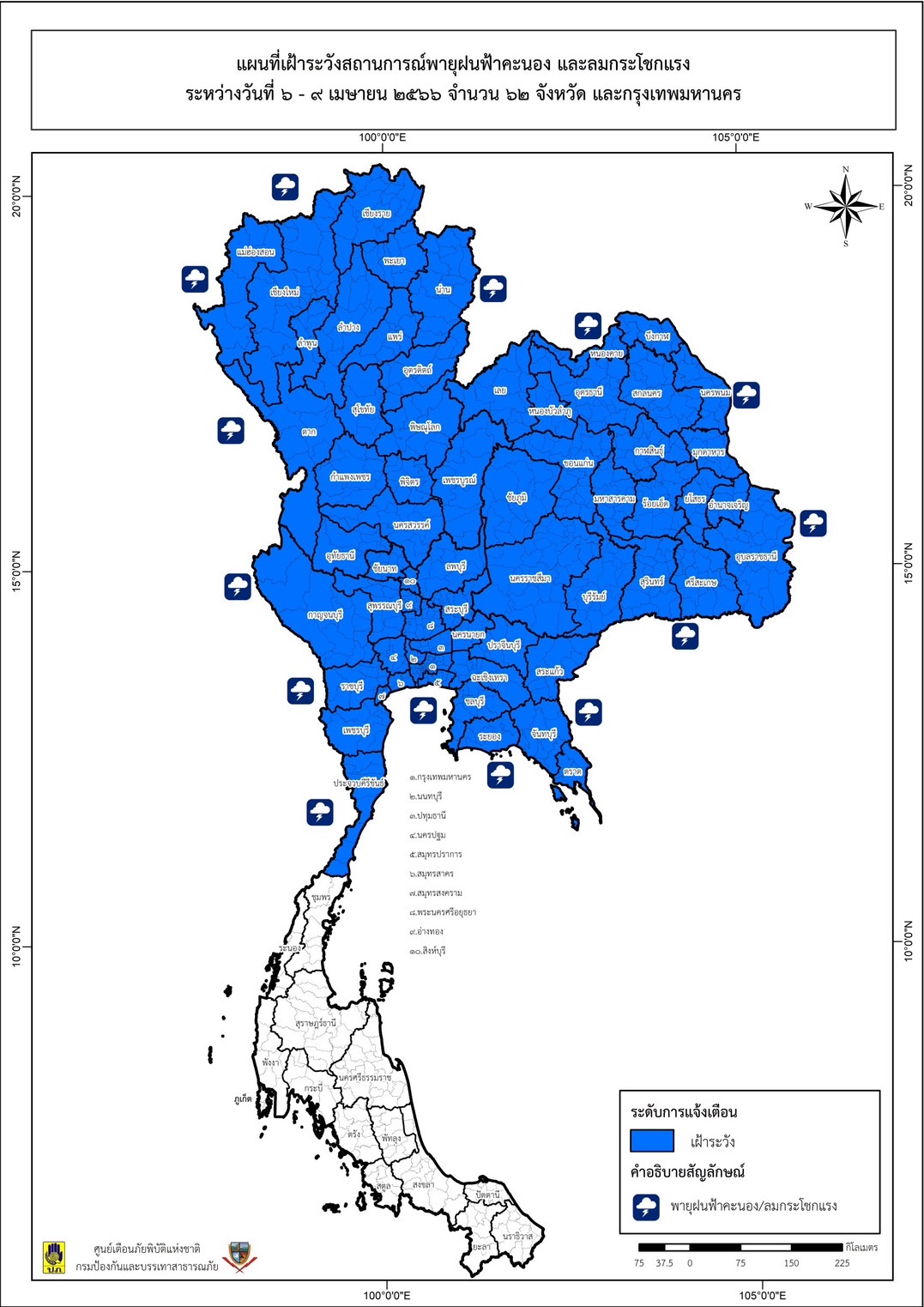 ปภ.แจ้ง 62 จังหวัดเหนือ-อีสาน-กลาง และ กทม. รับมือพายุฤดูร้อน ในช่วงวันที่ 6-9 เม.ย. 66