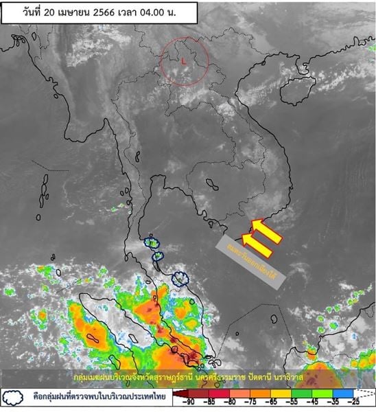 สำหรับลมตะวันตกเฉียงเหนือและลมตะวันตกเฉียงใต้พัดปกคลุมทะเลอันดามัน ภาคใต้ และอ่าวไทย ทำให้ภาคใต้มีฝนฟ้าคะนองเกิดขึ้นและมีฝนตกหนักบางแห่ง ขอให้ประชาชนในบริเวณดังกล่าวระวังอันตรายจากฝนฟ้าคะนอง