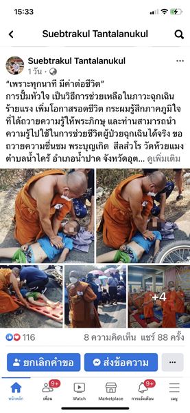 การปั้มหัวใจ เป็นวิธีการช่วยเหลือในภาวะฉุกเฉินร้ายแรง เพิ่มโอกาสรอดชีวิต กระผมรู้สึกภาคภูมิใจที่ได้ถวายความรู้ให้พระภิกษุ และท่านสามารถนำความรู้ไปใช้ในการช่วยชีวิตผู้ป่วยฉุกเฉินได้จริง