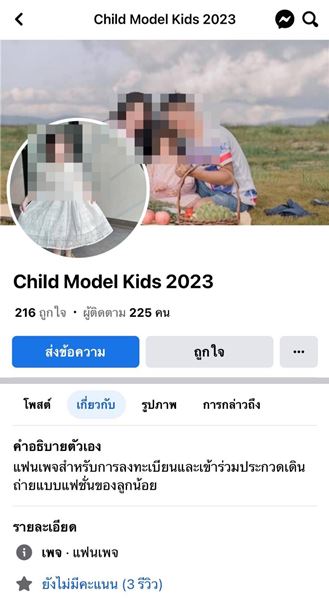 พ.ต.อ.กฤษณะ พัฒนเจริญ โฆษก บช.สอท. ขอฝากเตือนภัยมิจฉาชีพสร้างเพจ facebook ปลอมหลอกลวงผู้ปกครองให้ลงทะเบียนสมัครเข้าประกวดคัดเลือกนายแบบนางแบบเด็ก หรือถ่ายแบบแฟชั่นเสื้อผ้าเด็ก สุดท้ายถูกหลอกให้โอนเงินซื้อสินค้าอ้างเพื่อเพิ่มคะแนนเข้าสู่รอบต่อไป ดังนี้