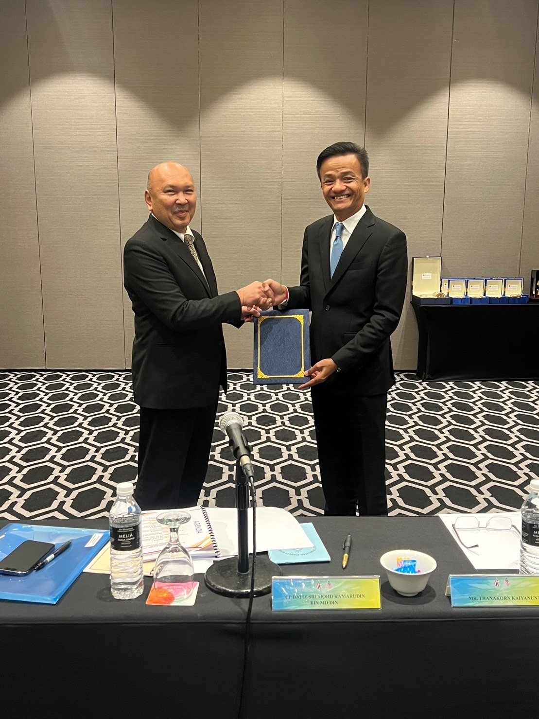 เมื่อวันที่ 26 กันยายน 2566 นายวิชัย ไชยมงคล เลขาธิการคณะกรรมการป้องกันและปราบปรามยาเสพติด (เลขาธิการ ป.ป.ส.) มอบหมายให้ นายธนากร คัยนันท์ รองเลขาธิการ ป.ป.ส. เป็นหัวหน้าคณะผู้แทนไทย โนโอกาสเข้าร่วมการประชุมทวิภาคีไทย-มาเลเซีย เรื่องความร่วมมือด้านการปราบปรามยาเสพติด ครั้งที่ 41 กับ CP Dato’ Sri Mohd Kamarudin Bin Md Din (ดาโตะ ศรี โมฮัมหมัด คามารุดีน บิน มัด ดิน) ผู้บัญชาการกรมสืบสวนสอบสวนอาชญากรรมยาเสพติด (Narcotics Crime Investigation Department: NCID) สำนักงานตำรวจแห่งชาติมาเลเซีย หัวหน้าคณะผู้แทนมาเลเซียและประธานการประชุม พร้อมด้วย นายปฤณ เมฆานันท์ ผู้อำนวยการสำนักปราบปรามยาเสพติด นายพงศธร ธรรมชาติ ผู้อำนวยการสำนักป้องกันและปราบปรามยาเสพติด ภาค 9 และพลตำรวจตรี สมกิต พุ่มวารี ผู้บังคับการข่าวกรองยาเสพติด กองบัญชาการตำรวจปราบปรามยาเสพติด คณะผู้เกี่ยวข้องจาก สำนักงาน ป.ป.ส. กองบัญชาการตำรวจปราบปรามยาเสพติด และผู้แทนจากประเทศมาเลเซีย ณ กรุงกัวลาลัมเปอร์ สหพันธรัฐมาเลเซีย