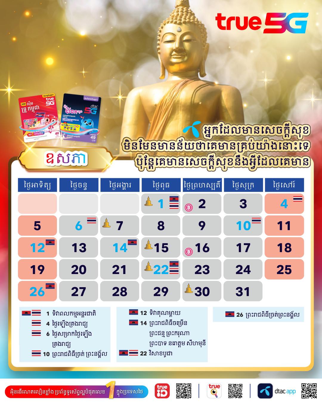 ในเพจเฟซบุ๊ก of dtac Myanmar, True Myanmar, dtac Cambodia, and True Cambodia ที่ถือเป็นคอมมูนิตี้ของพี่น้องแรงงานจะมีปฏิทินบอกวันสำคัญทางศาสนาทั้งในไทย เมียนมา และกัมพูชา ให้กับกลุ่มลูกค้าเป็นประจำทุกเดือน