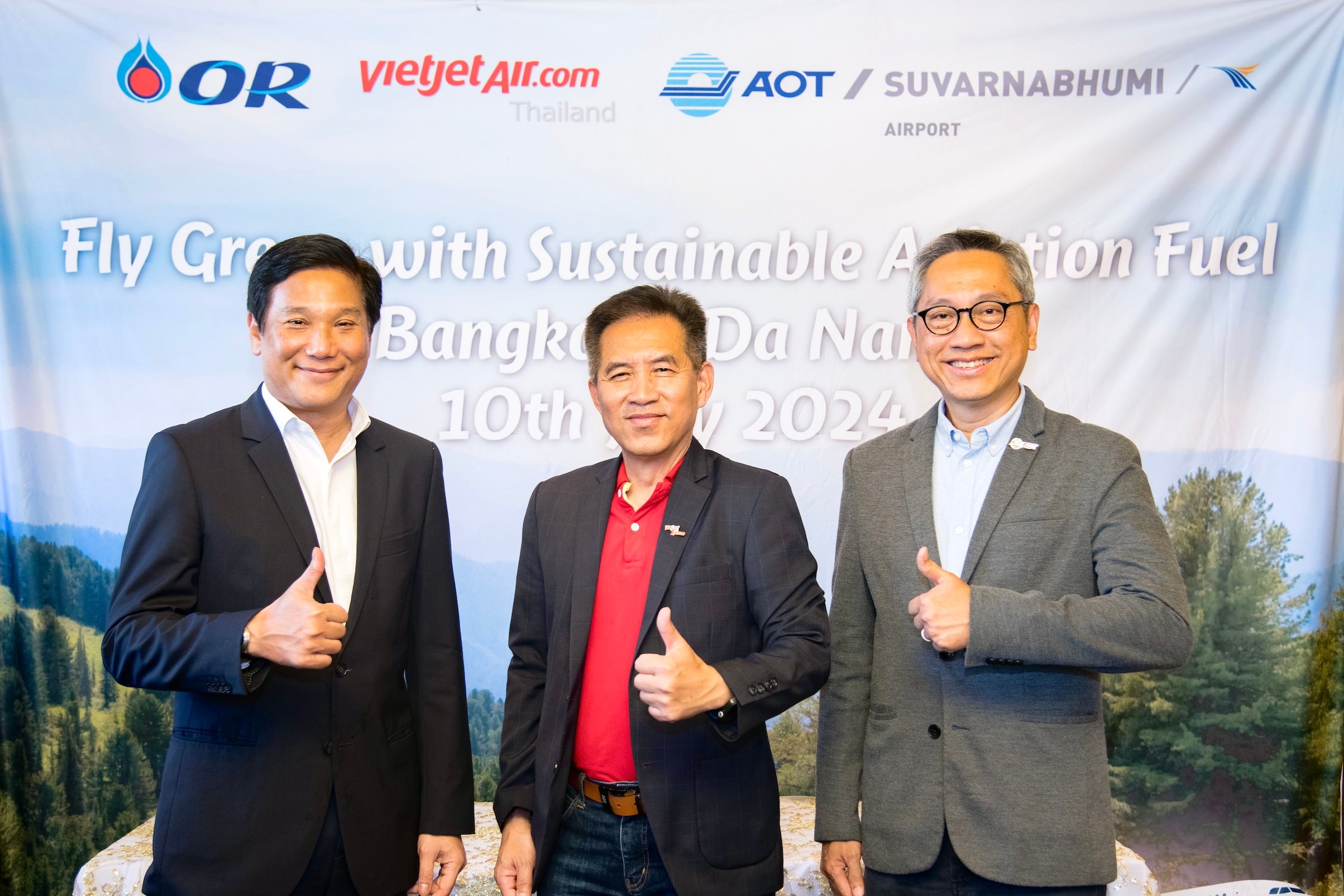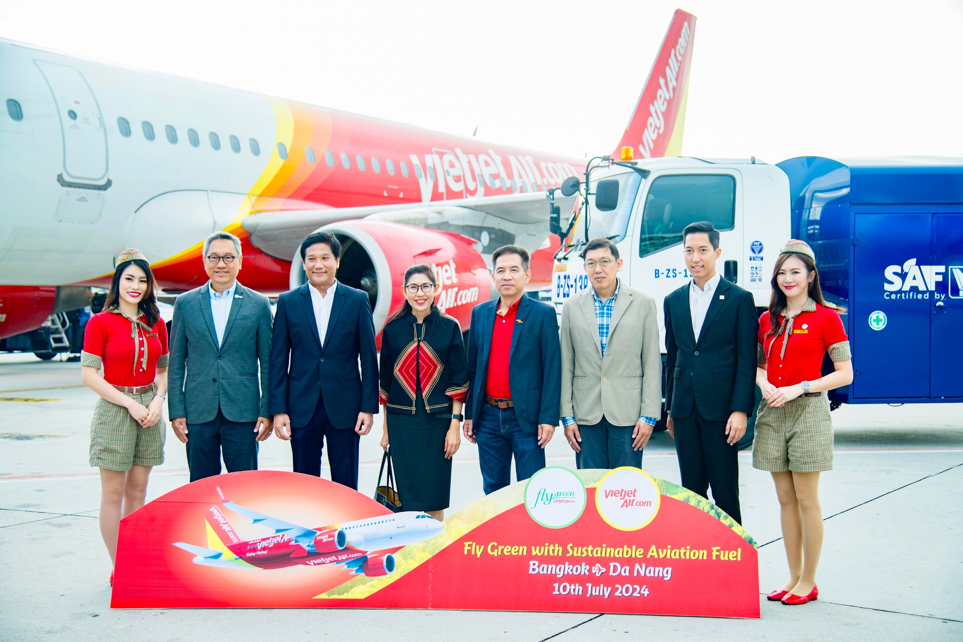 เวียตเจ็ทไทยแลนด์เปิดเที่ยวบินปฐมฤกษ์ กรุงเทพ-ดานัง เวียดนาม ซึ่งเป็นเที่ยวบินระหว่างประเทศเที่ยวบินแรกของไทยที่ใช้น้ำมันเชื้อเพลิงอากาศยานแบบยั่งยืน (SAF) ด้วยความร่วมมือระหว่างสายการบินฯ กับบริษัท ปตท.น้ำมันและการค้าปลีก จำกัด (มหาชน) (OR) พร้อมตั้งเป้าหมายใช้ SAF ปฏิบัติการบินร้อยละ 1 ภายในปี 2569 และร้อยละ 5 ภายในปี 2573 รวมทั้งสิ้น 20,000 ตัน ซึ่งจะลดปริมาณการปล่อยก๊าซคาร์บอนไดออกไซด์ได้ 153,000 ตัน ระหว่างปี 2568-2573 โดยในพิธีเปิดเที่ยวบินปฐมฤกษ์ เมื่อวันที่ 10 กรกฎาคม 2567 ที่ผ่านมา ได้รับเกียรติจาก นางสาวอุรวดี ศรีภิรมย์ เอกอัครราชทูต ณ กรุงฮานอย ประเทศเวียดนาม นายวุทธิชัย แก้วกระจ่าง ผู้อำนวยการศูนย์ปฏิบัติการวิเคราะห์มลพิษและสิ่งแวดล้อม กรมควบคุมมลพิษ กระทรวงทรัพยากรธรรมชาติและสิ่งแวดล้อม พร้อมผู้บริหารสายการบินฯ และพันธมิตร นำโดย นายวรเนติ หล้าพระบาง ประธานเจ้าหน้าที่บริหาร สายการบิน เวียตเจ็ทไทยแลนด์ นายดิษทัต ปันยารชุน ประธานเจ้าหน้าที่บริหาร บริษัท ปตท.น้ำมันและการค้าปลีก จำกัด (มหาชน) (OR) นายจักรภพ จรัสศรี ผู้อำนวยการฝ่ายสิ่งแวดล้อม บริษัท ท่าอากาศยานไทย จำกัด (มหาชน) (AOT) และ หม่อมหลวงณัฐสิทธิ์ ดิศกุล กรรมการผู้อำนวยการใหญ่ บริษัท บริการเชื้อเพลิงการบินกรุงเทพ จำกัด (มหาชน) (บาฟส์ : BAFS) ร่วมเป็นสักขีพยานในพิธี ณ สนามบินนานาชาติสุวรรณภูมิ