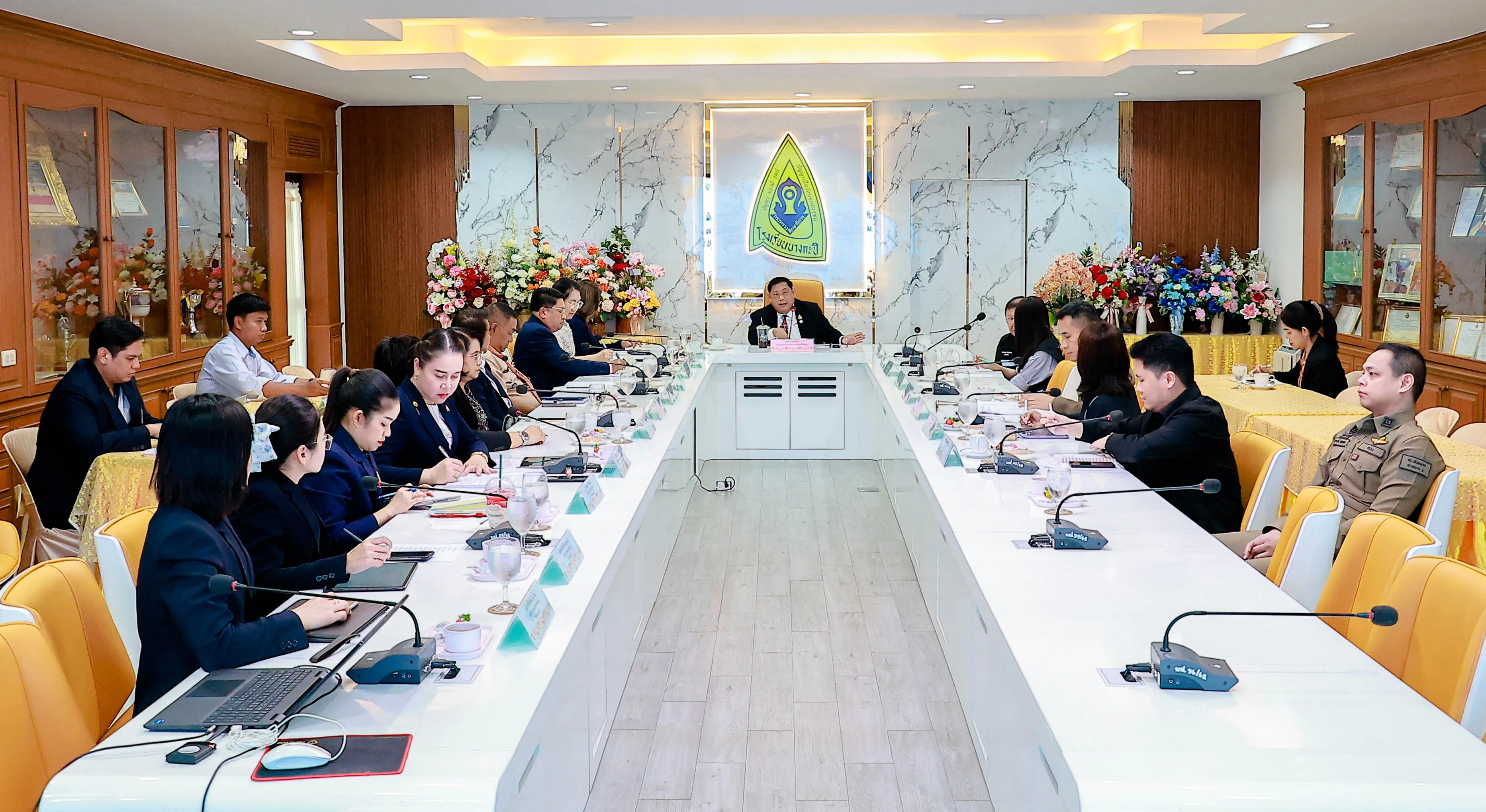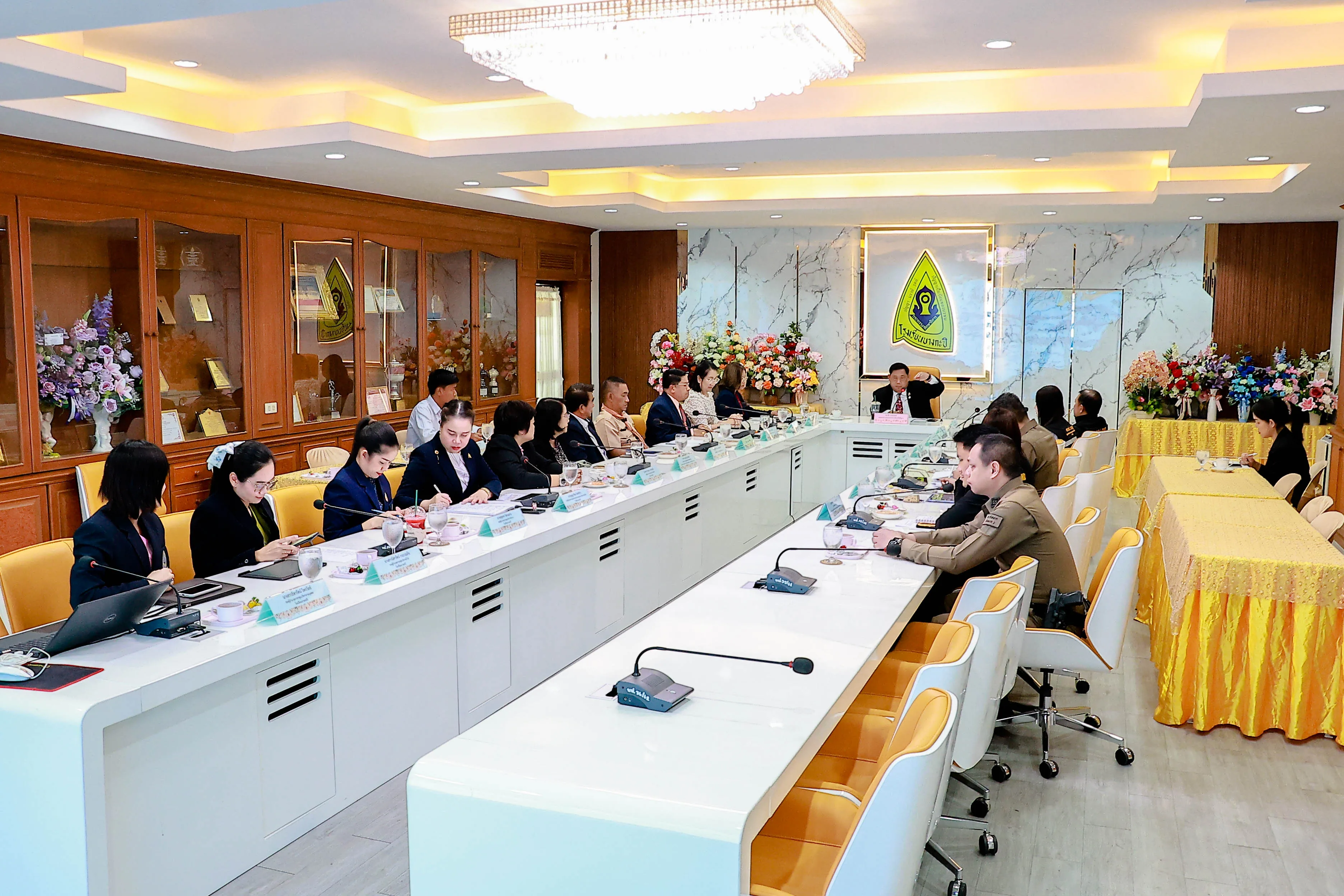 โดยมี นายรังสรรค์ นกสกุล ผอ.โรงเรียนเทพลีลา สังกัด สพม.กท.2 ดร.วินัย คำวิเศษ ผอ.โรงเรียนบางกะปิ สังกัด สพม.กท.2 และนายอำนวย วงษ์สุบรรณ์ ผอ.โรงเรียนมัธยมบ้านบางกะปิ สังกัดกรุงเทพมหานคร เข้าร่วมประชุมและรับมอบนโยบาย ณ ห้องประชุมเกียรติยศ โรงเรียนบางกะปิ