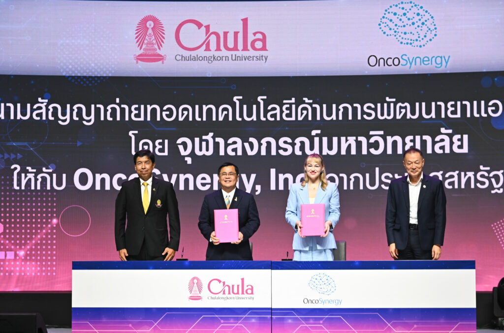 รศ.ภญ.ดร.จิตติมา ลัคนากุล ผู้อำนวยการศูนย์กลางนวัตกรรมแห่งจุฬาลงกรณ์มหาวิทยาลัย กล่าวว่า การลงนามสัญญาถ่ายทอดเทคโนโลยีด้านการพัฒนายาในครั้งนี้ ถือเป็นครั้งแรกที่มีบริษัทต่างชาติมาขอทำข้อตกลงถ่ายทอดเทคโนโลยี “ยาชีววัตถุโมเลกุลใหม่” ในประเทศไทย ซึ่ง OncoSynergy เล็งเห็นว่าผลการวิจัยของยาในระดับห้องปฏิบัติการมีศักยภาพสูงมาก เมื่อทำข้อตกลงกันแล้ว ต่อไปจะมีการลงทุนทำวิจัยต่อยอดเพื่อเข้าสู่การทดลองในระดับคลินิก ถือเป็นการนำองค์ความรู้ของ OncoSynergy เข้ามาร่วมทำวิจัยร่วมกับนักวิจัยของจุฬาฯ จึงทำให้เกิดเม็ดเงินจากการทำข้อตกลงดังกล่าวเพื่อนำไปต่อยอดงานวิจัยได้มากยิ่งขึ้น อีกทั้งจุฬาฯ ยังได้รับโนว์ฮาวจากผู้เชี่ยวชาญด้านการขึ้นทะเบียนยาใหม่ ซึ่งช่วยส่งเสริมให้เกิด Real Assets Collaborative Project หรือสินทรัพย์จริงอันเกิดจากการทำโครงการร่วมกัน ถือเป็นสิ่งที่อุตสาหกรรมยาในไทยไม่เคยมีมาก่อน