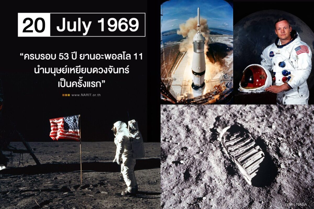 วันนี้เมื่อ 53 ปีที่แล้ว ยานอะพอลโล 11 นำมนุษย์เหยียบดวงจันทร์เป็นครั้งแรก 20 กรกฎาคม ค.ศ. 1969