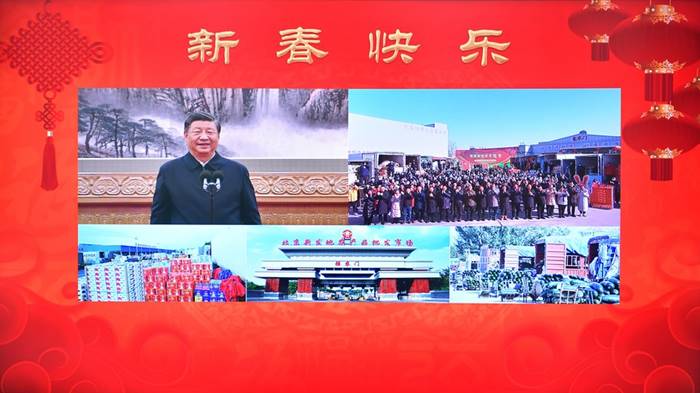 สีจิ้นผิง ซึ่งดำรงตำแหน่งเลขาธิการใหญ่คณะกรรมการกลางพรรคคอมมิวนิสต์จีน (CPC) และประธานคณะกรรมาธิการการทหารส่วนกลาง ได้พูดคุยผ่านระบบวิดีโอกับบุคลากรการแพทย์ในโรงพยาบาล ผู้สูงอายุที่สถานสวัสดิการ คนงานที่บ่อน้ำมันอันห่างไกล นักเดินทางและพนักงานที่สถานีรถไฟความเร็วสูง ผู้ค้าขายและลูกค้าที่ตลาดค้าส่ง และชาวหมู่บ้านกลุ่มชาติพันธุ์ส่วนน้อย