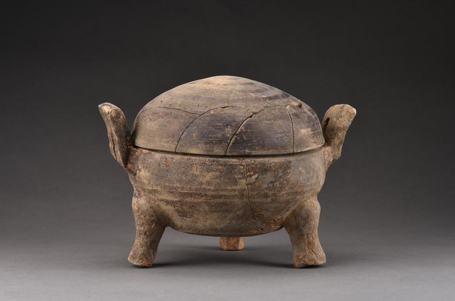 (ภาพจากสถาบันโบราณคดีมณฑลซานซี : หม้อสามขาดินเผาที่ขุดพบในเมืองหลินเฝิน มณฑลซานซีทางตอนเหนือของจีน)