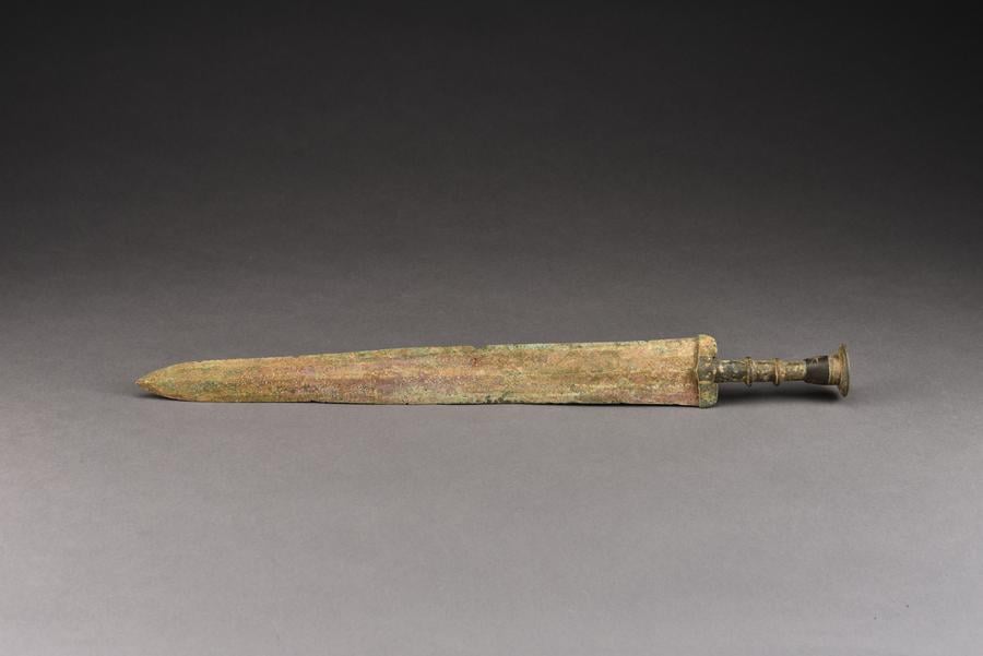 (ภาพจากสถาบันโบราณคดีมณฑลซานซี : ดาบสัมฤทธิ์ที่ขุดพบในเมืองหลินเฝิน มณฑลซานซีทางตอนเหนือของจีน)