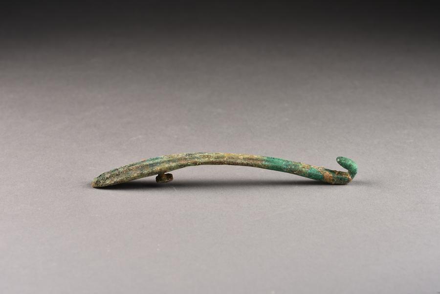 (ภาพจากสถาบันโบราณคดีมณฑลซานซี : ตะขอเข็มขัดทำจากสัมฤทธิ์ที่ขุดพบในเมืองหลินเฝิน มณฑลซานซีทางตอนเหนือของจีน)